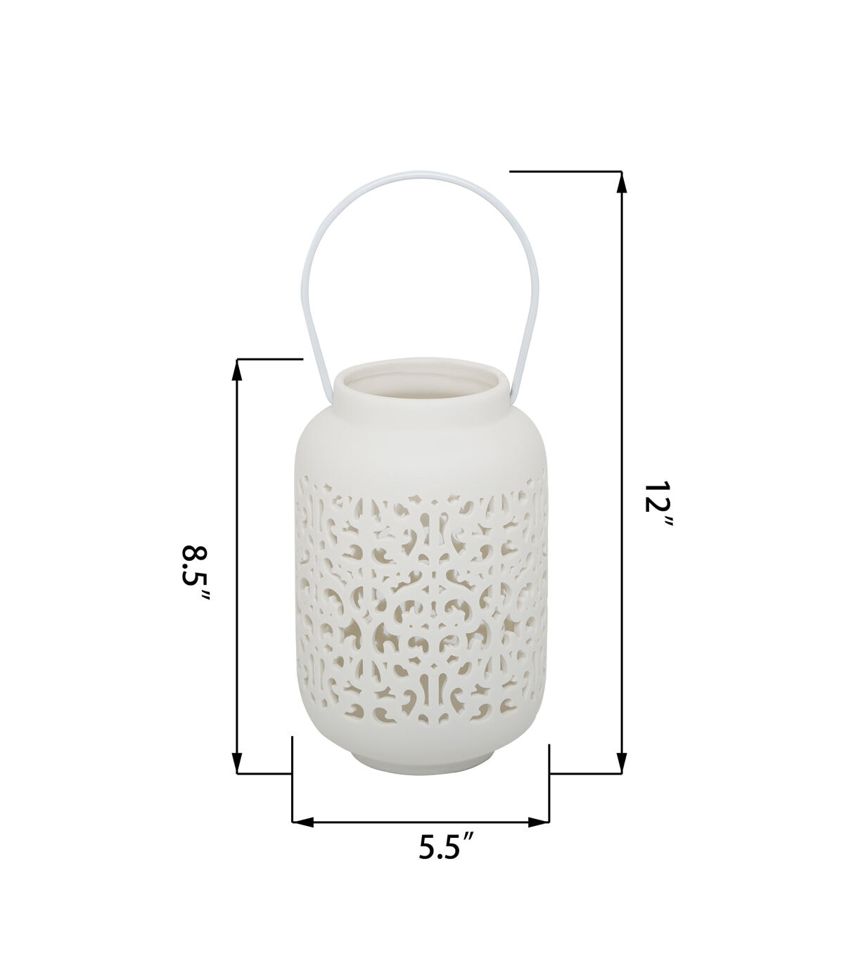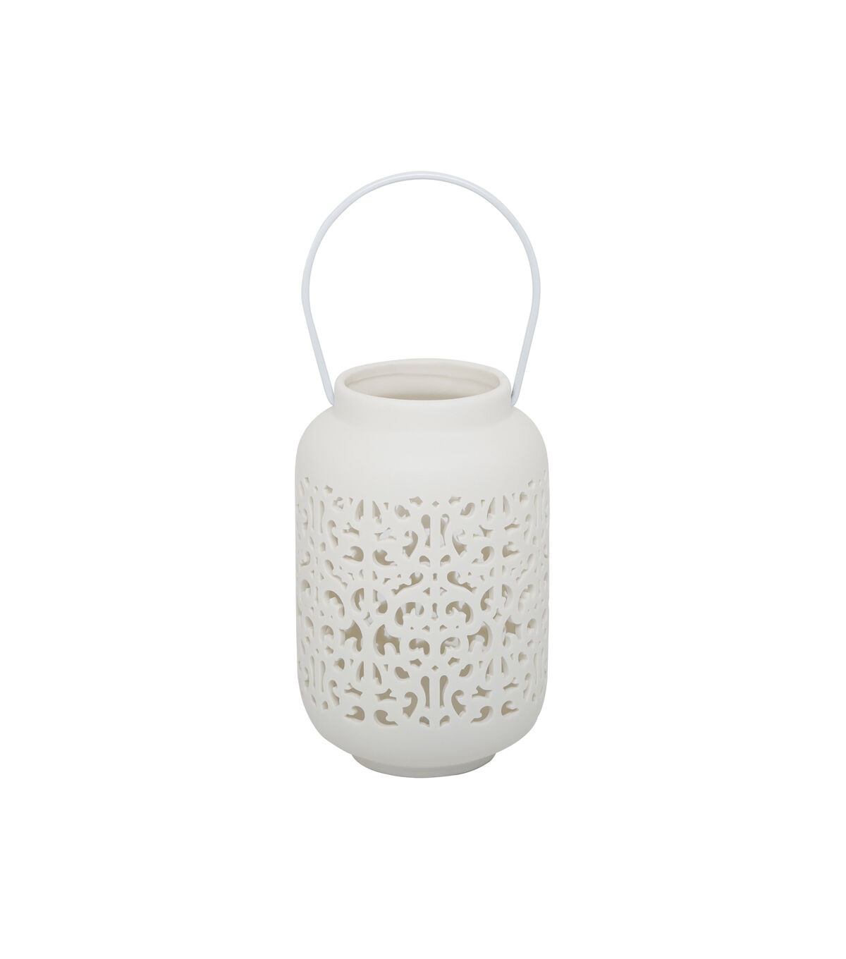Brighten up your home -- and your mood -- with this ceramic lantern. Handmade by Artisans, the decorative cutouts allow the warm glow of the flameless candle tucked inside to subtly shine. Made of ceramic and painted ivory this 5”x5”x7.5” lantern is the perfect item to display in any space. What’s not to love! Handcrafted by Artisans Measurement: 5”x5”x7.5” Color: Ivory Materials: Ceramic **No Drainage Holes. Indoor use only.**