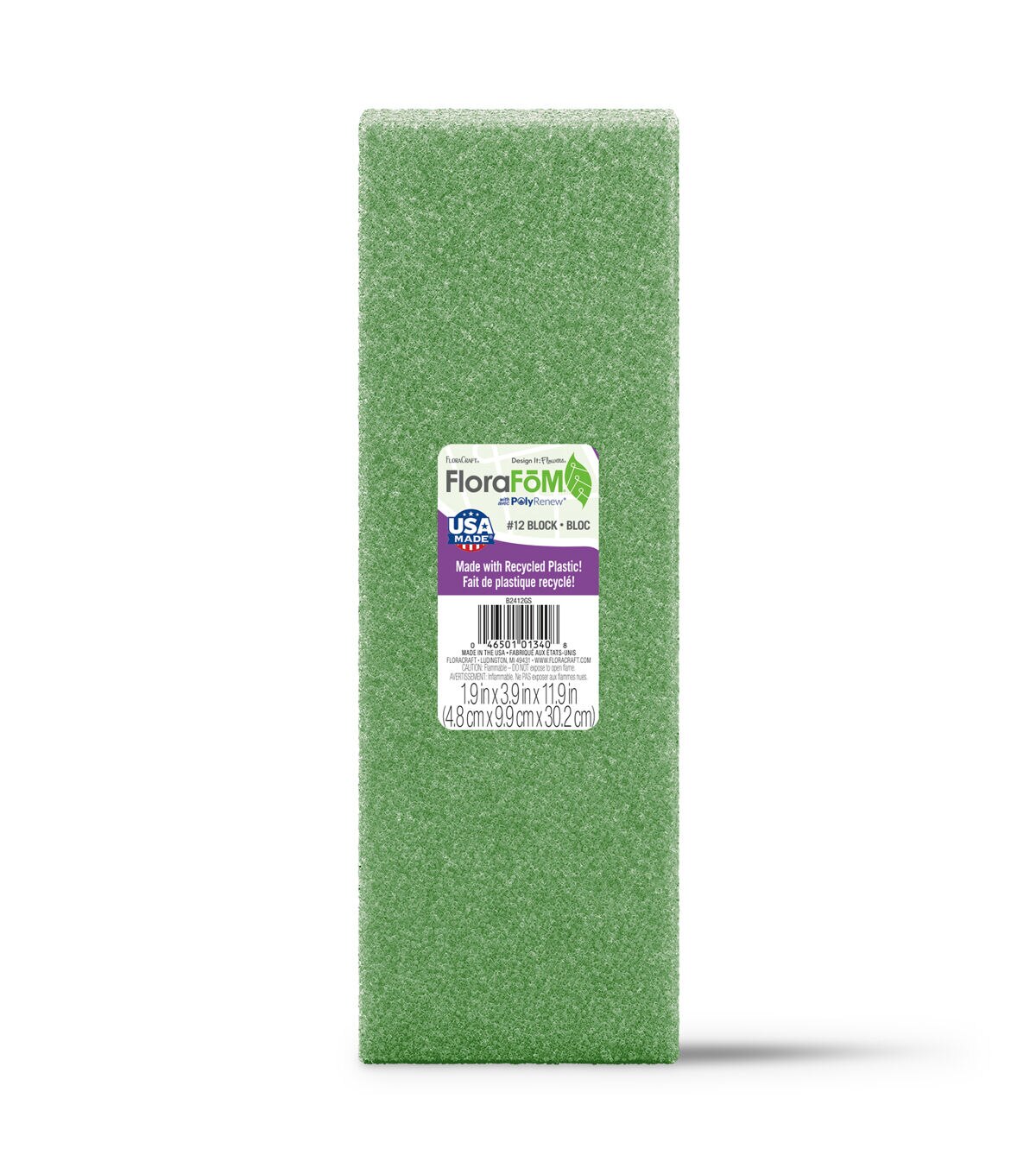 Start your floral displays and event decorations off with the right base by using FloraCraft FloraFōM - now made with recycled plastic! Its crunchy cell structure is great for holding artificial flower stems, heavy-stemmed naturals (like branches and twigs) and floral picks in place. It can also be cut, shaped, painted or textured to create any customized home or event décor. Plus, FloraCraft FloraFōM is suitable for both indoor and outdoor use. This package contains one 1.9” x 3.9” x 11.9” green foam block. Made by a socially responsible, American company.