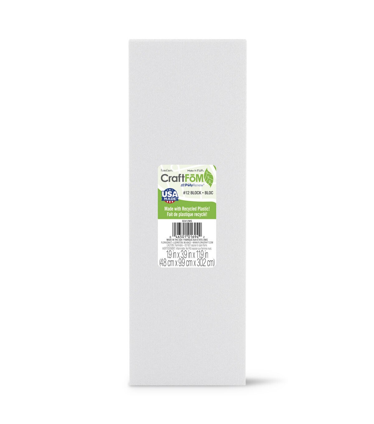 - This package contains one 1.9" x 3.9" x 11.9" white CraftFōM block.