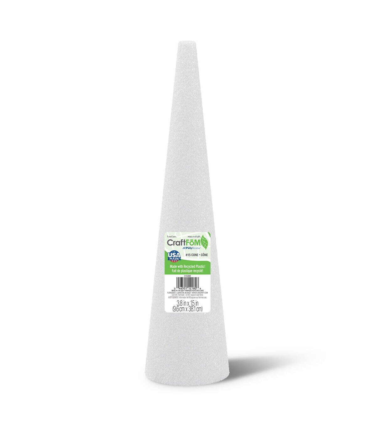 Start your school and craft projects with the right base by using FloraCraft CraftFōM - now made with recycled plastic! Its lightweight structure is great for classroom projects, party and event displays and seasonal décor. FloraCraft CraftFōM can be painted or coated with a broad range of products to create virtually any color or texture. Plus, it's suitable for both indoor and outdoor use. This package contains one 3.8" x 15" white foam cone. Made by a socially responsible, American company.