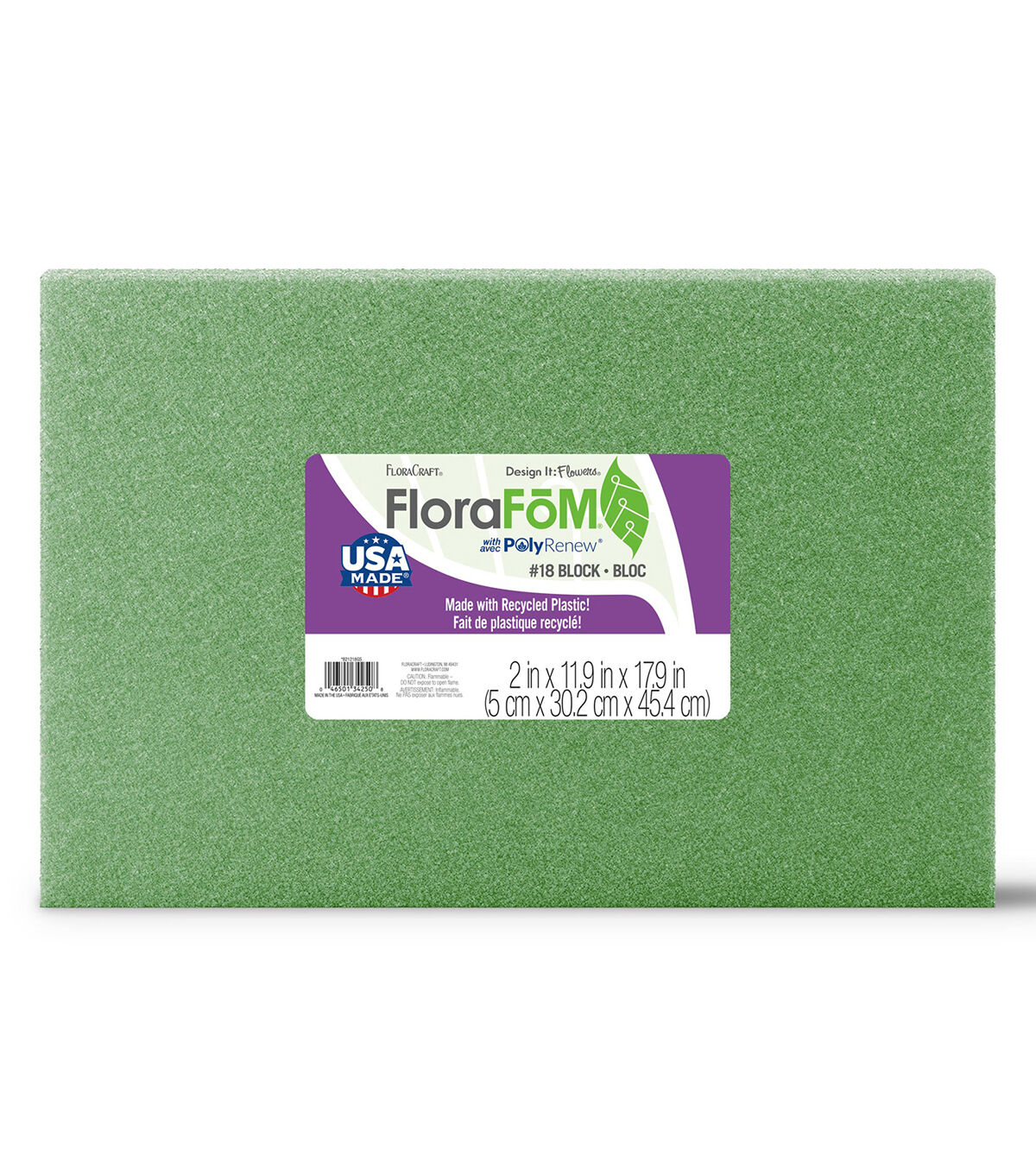 Start your floral displays and event decorations off with the right base by using FloraCraft FloraFōM - now made with recycled plastic! Its crunchy cell structure is great for holding artificial flower stems, heavy-stemmed naturals (like branches and twigs) and floral picks in place. It can also be cut, shaped, painted or textured to create any customized home or event décor. Plus, FloraCraft FloraFōM is suitable for both indoor and outdoor use. This package contains one 2” x 11.9” x 17.9” green foam block. Made by a socially responsible, American company.