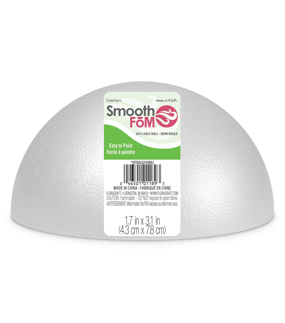 Start your school and craft projects with the right base by using FloraCraft SmoothFoM. Its smooth, durable, EPS foam structure is great for painting or coating with a broad range of products to create any custom color or texture. SmoothFoM is perfect for classroom projects, party and event displays as well as seasonal décor. This package contains one 1.7" x 3.1" SmoothFoM half ball.