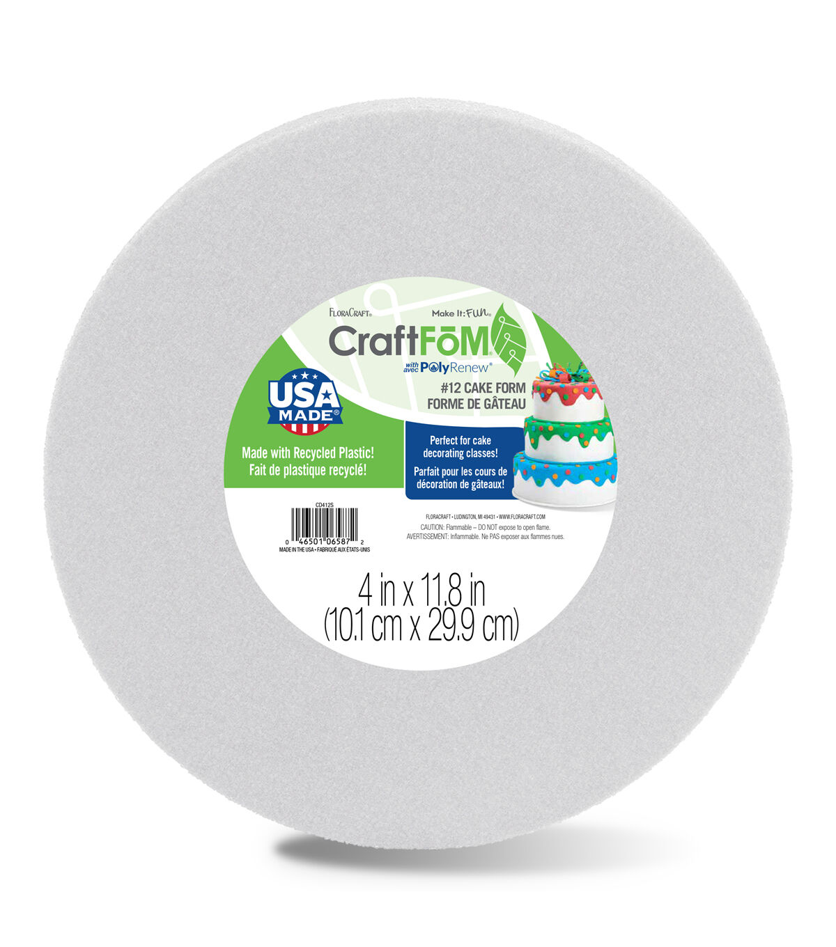 - This package contains one 4” thick x 11.8” diameter round white CraftFōM cake form.