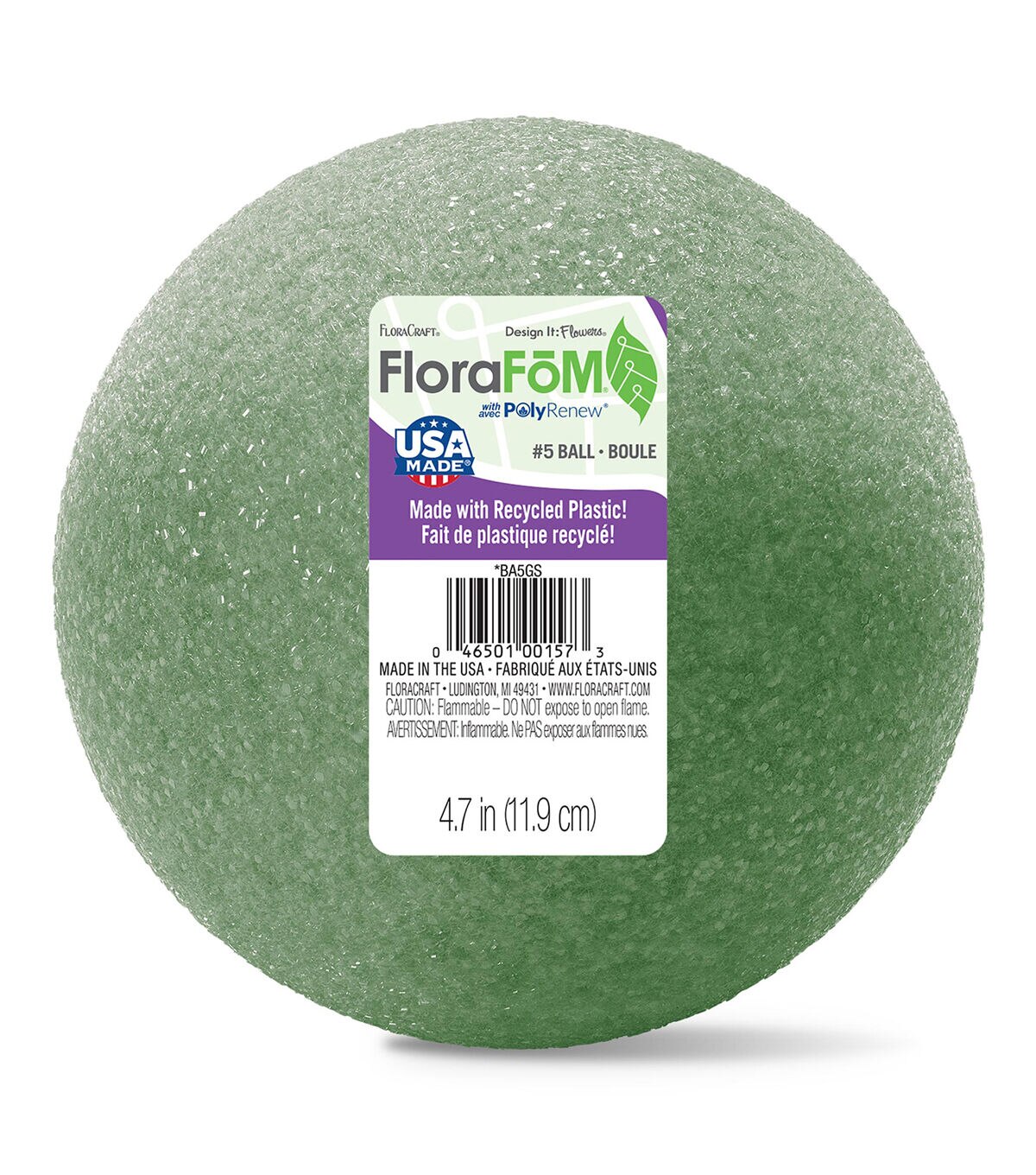Start your floral displays and event decorations off with the right base by using FloraCraft FloraFōM - now made with recycled plastic! Its crunchy cell structure is great for holding artificial flower stems, heavy-stemmed naturals (like branches and twigs) and floral picks in place. It can also be cut, shaped, painted or textured to create any customized home or event décor. Plus, FloraCraft FloraFōM is suitable for both indoor and outdoor use. This package contains one 4.7” green foam ball. Made by a socially responsible, American company.