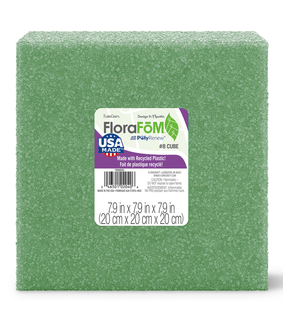 Start your floral displays and event decorations off with the right base by using FloraCraft FloraFōM - now made with recycled plastic! Its crunchy cell structure is great for holding artificial flower stems, heavy-stemmed naturals (like branches and twigs) and floral picks in place. It can also be cut, shaped, painted or textured to create any customized home or event décor. Plus, FloraCraft FloraFōM is suitable for both indoor and outdoor use. This package contains one 7.9” x 7.9” x 7.9” green foam cube. Made by a socially responsible, American company.