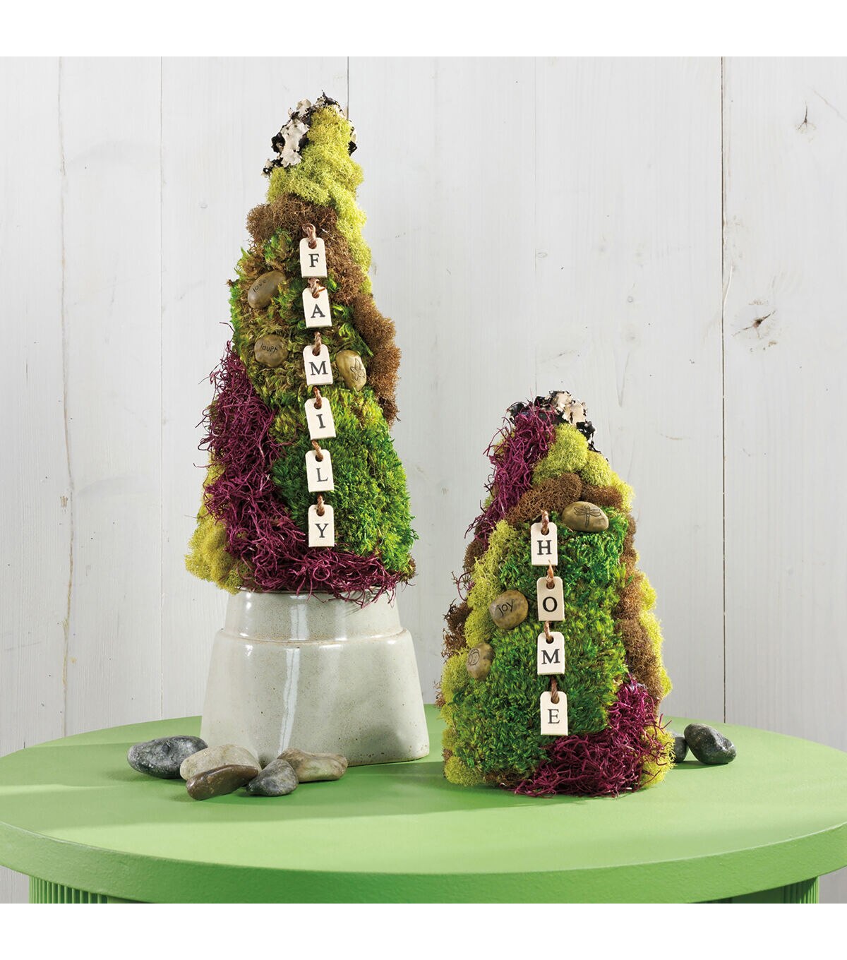 - Green color blends with floral stems and moss for a natural look.