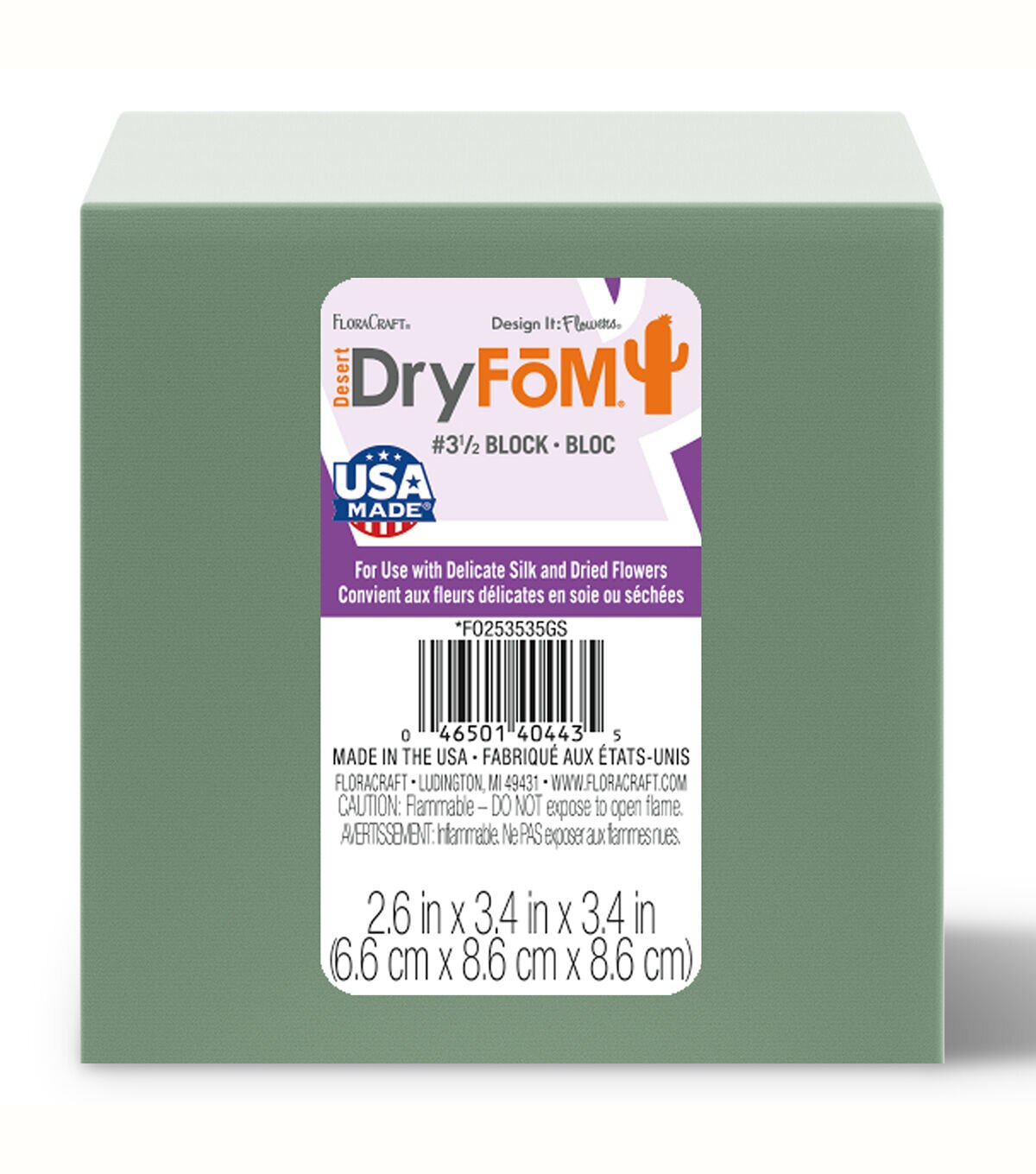 Create your next dried or silk floral arrangement with FloraCraft Desert DryFoM. Its soft cell structure is great for arranging fragile dried stems, delicate artificial flowers and wispy permanent botanicals. FloraCraft’s Desert DryFoM cuts easily to fit any size container and blends in with floral stems and moss for a natural look. Great for beginner and professional florists alike. This package contains one 2.6” x 3.4” x 3.4” dry foam block. Made by a socially responsible, American company.