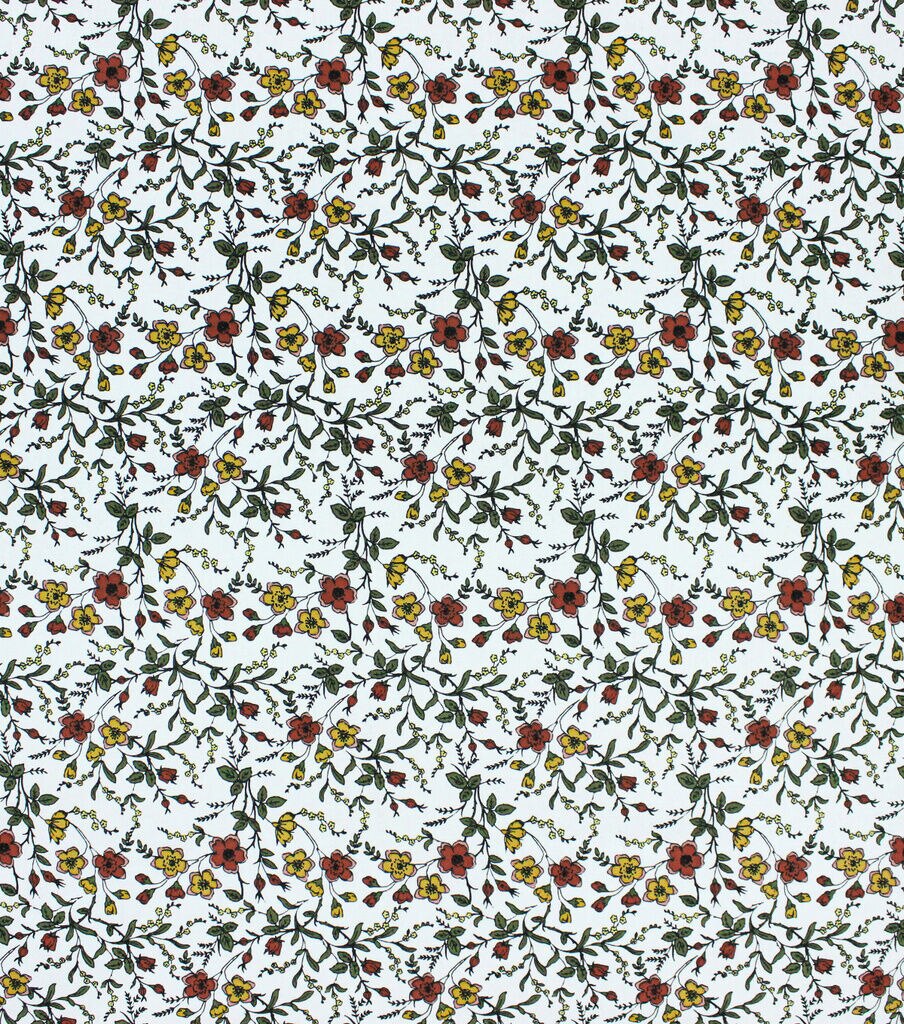 • Floral Brick on White Cotton Canvas Fabric