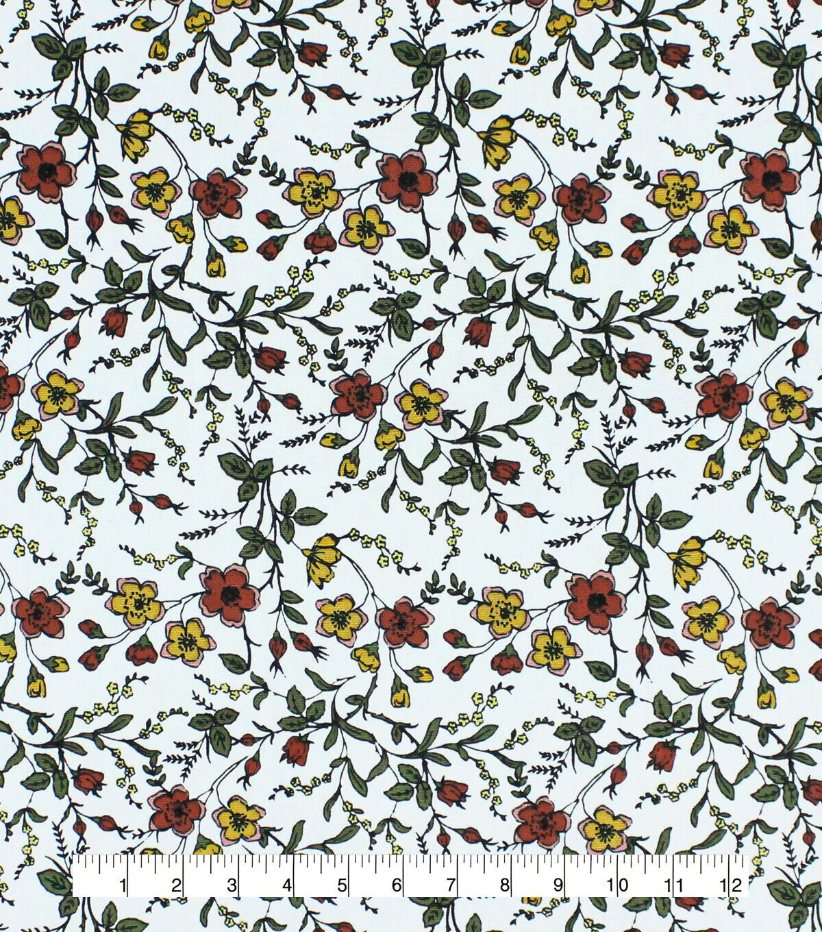 Floral Brick on White Cotton Canvas Fabric