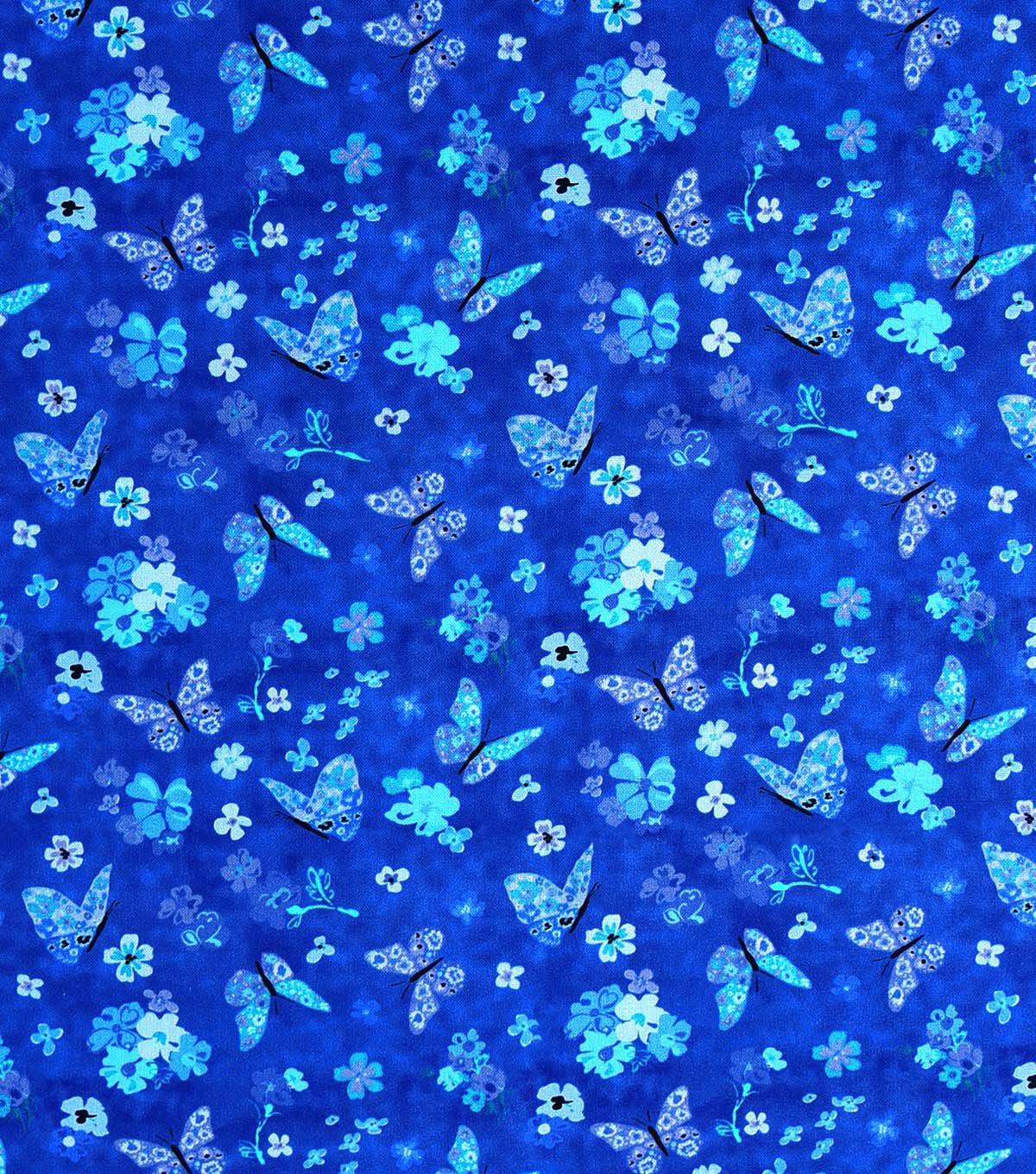 Bring Nature into Your Home with Floral & Butterflies on Blue Cotton Fabric by Keepsake Calico