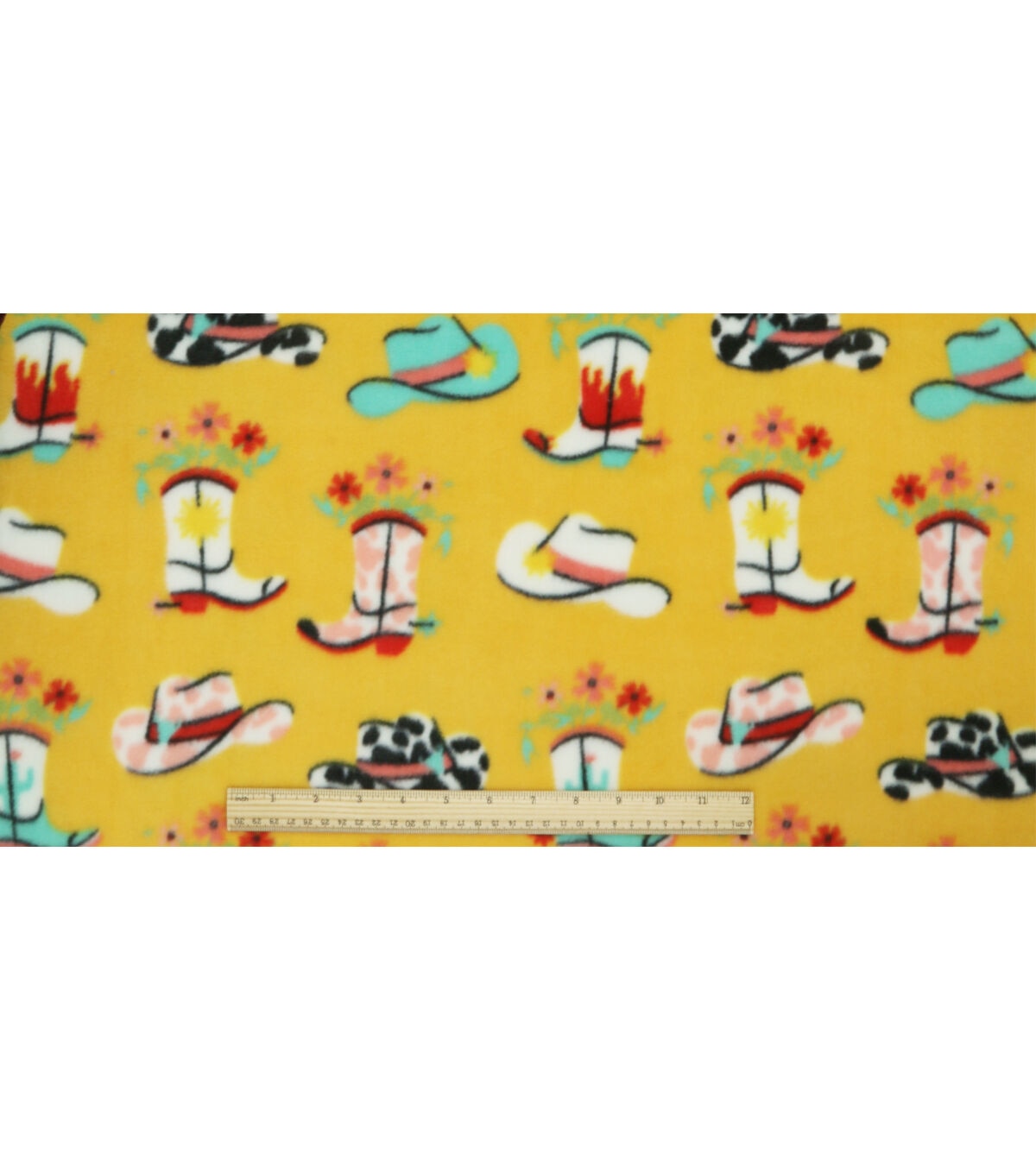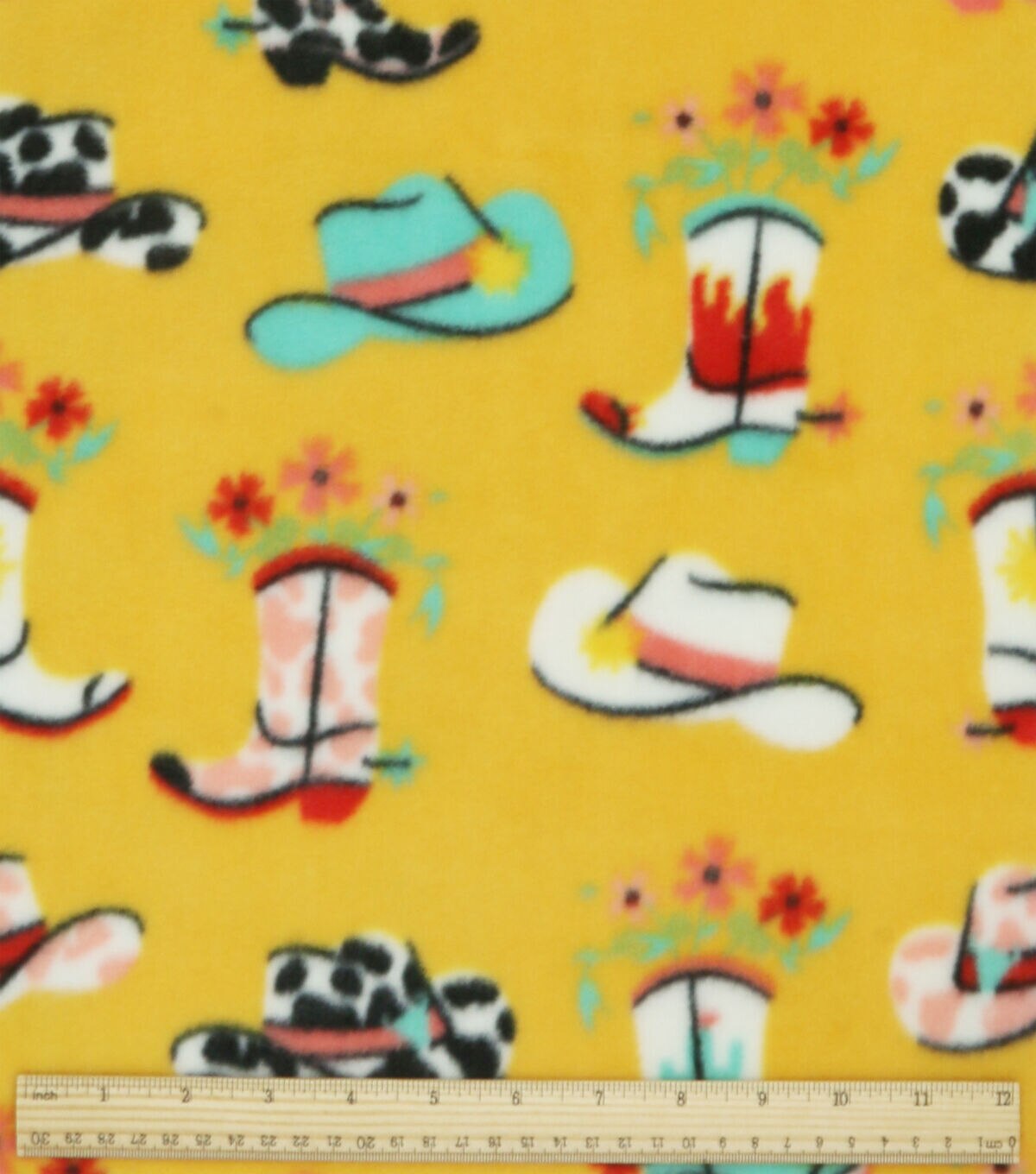 • Floral Cowboy Boots on Yellow Anti Pill Fleece Fabric