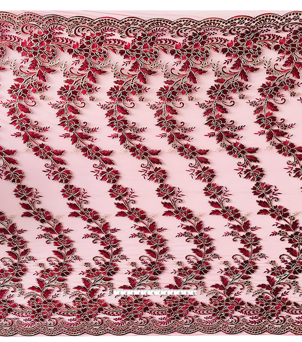 • Floral Gold Cording Red Mesh Fashion Apparel Fabric