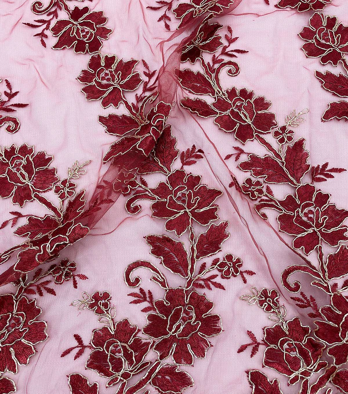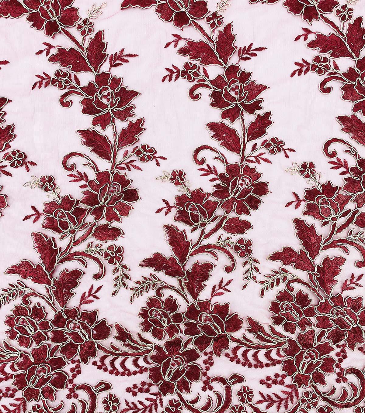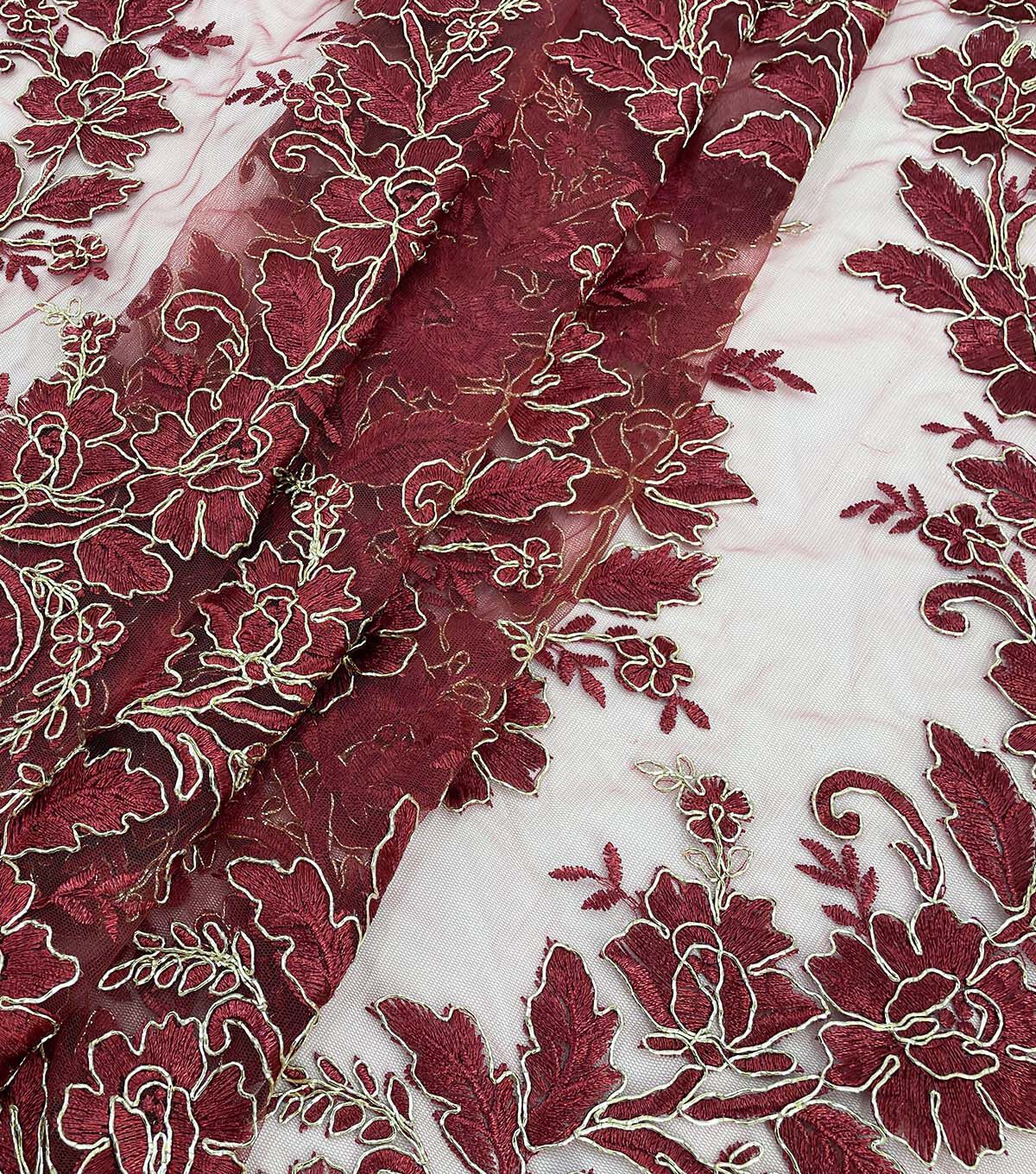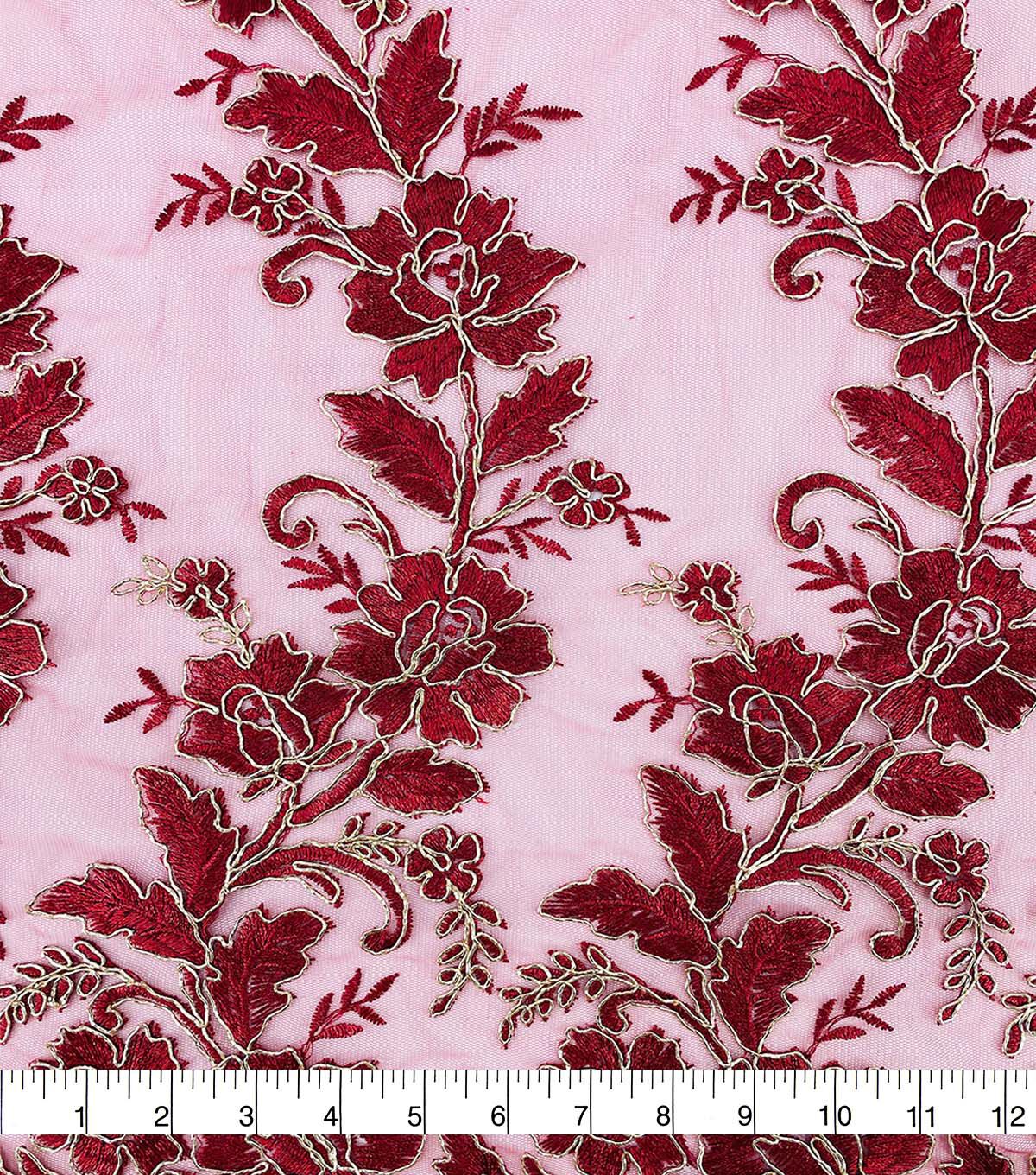 Floral Gold Cording Red Mesh Fashion Apparel Fabric