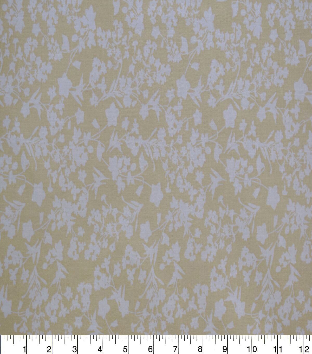 Floral & Leaves on Sand Quilt Cotton Fabric by Quilter's Showcase