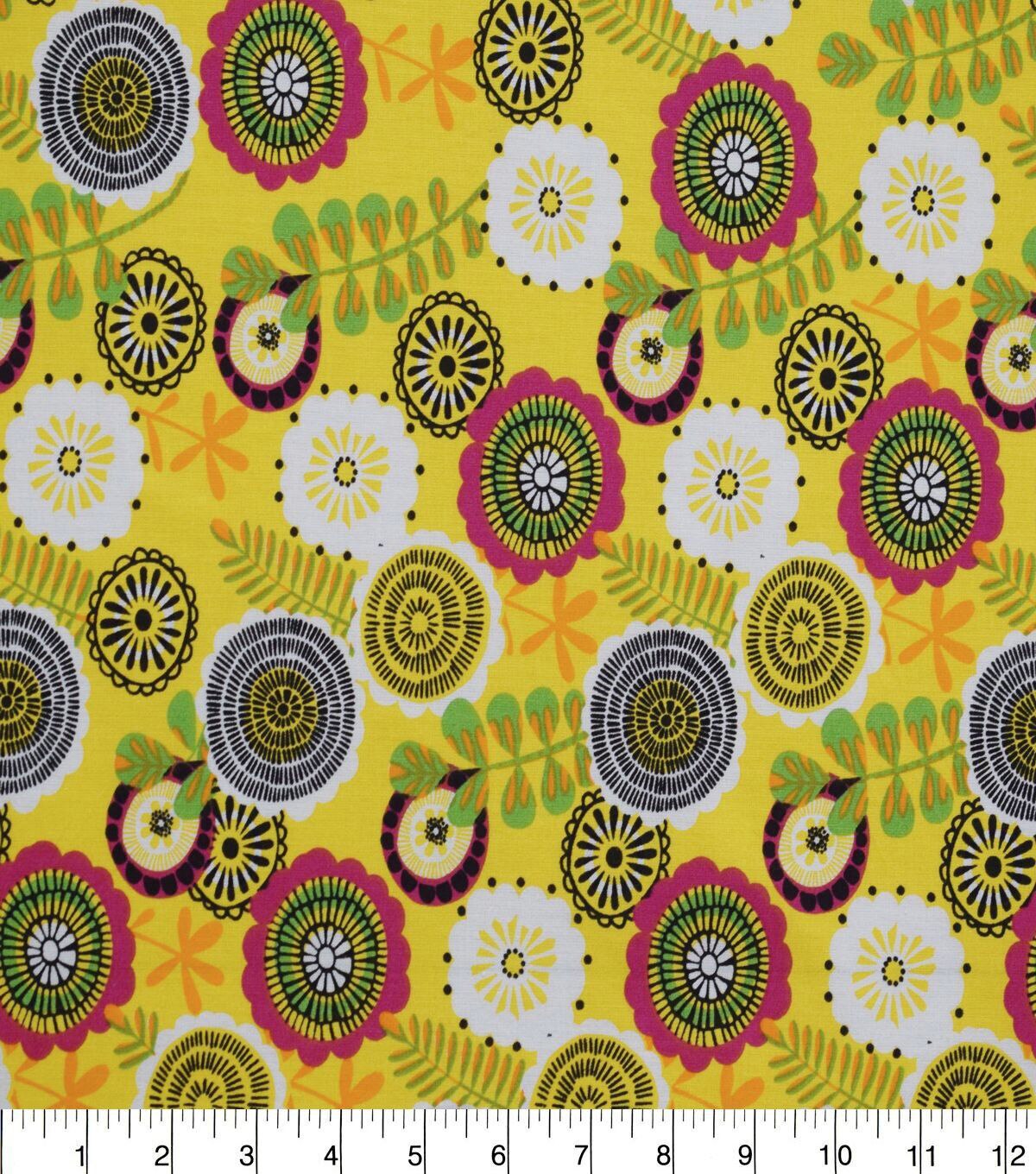 Floral & Leaves on Yellow Quilt Cotton Fabric by Quilter's Showcase