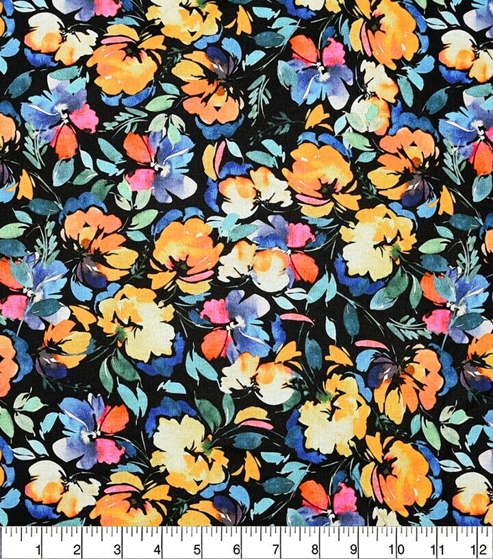 • Floral on Black Quilt Cotton Fabric by Keepsake Calico