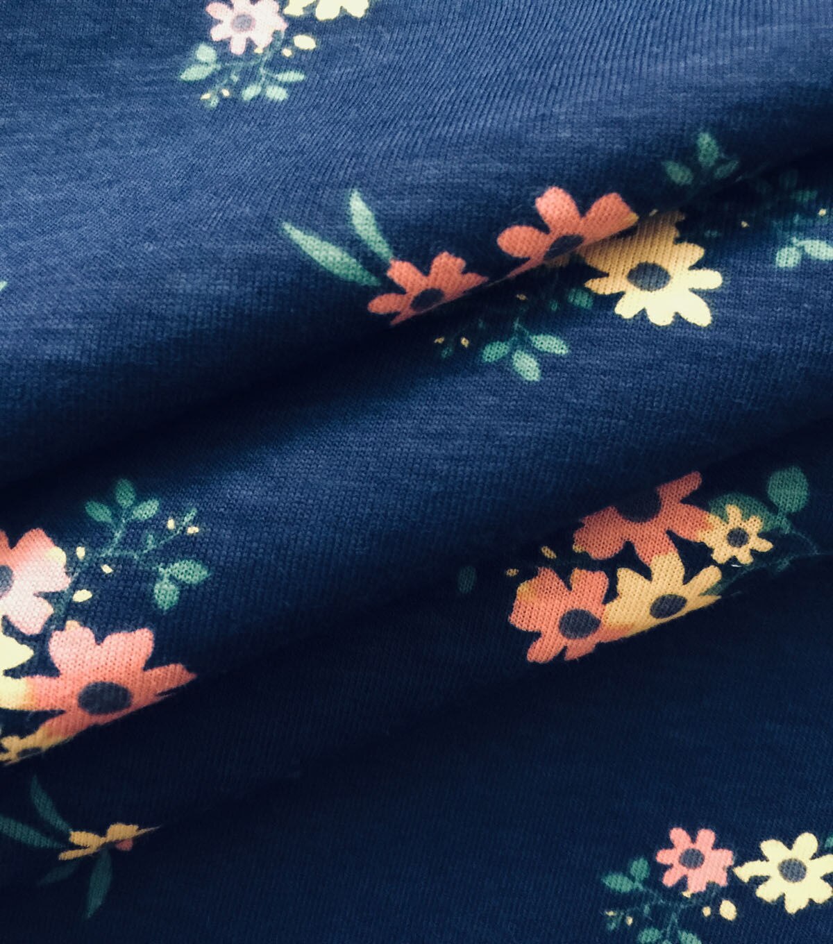 Get Creative with Our Floral on Blue Jersey Knit Fabric
