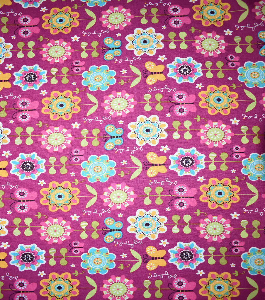 • Floral on Bright Pink Quilt Cotton Fabric by Keepsake Calico