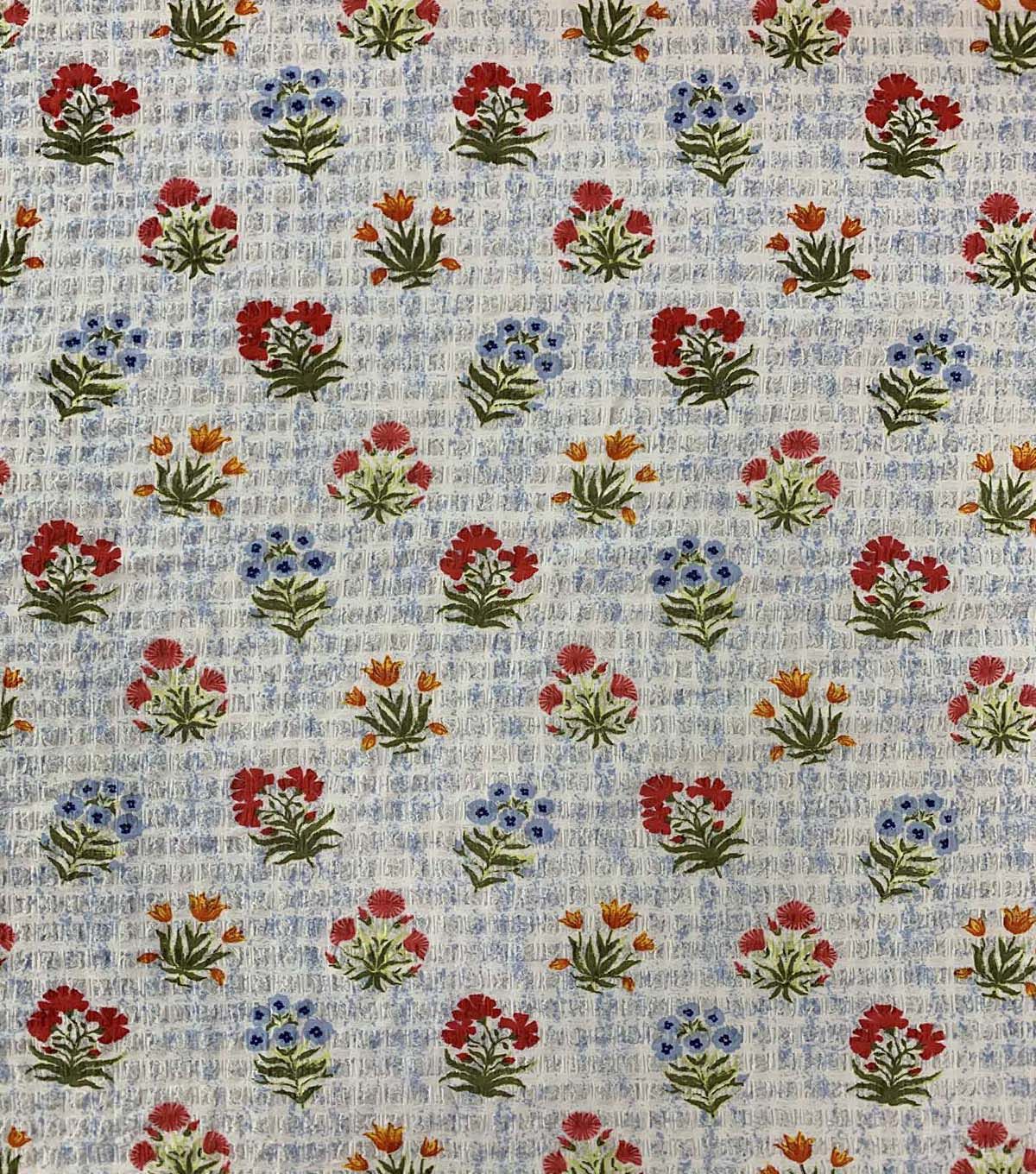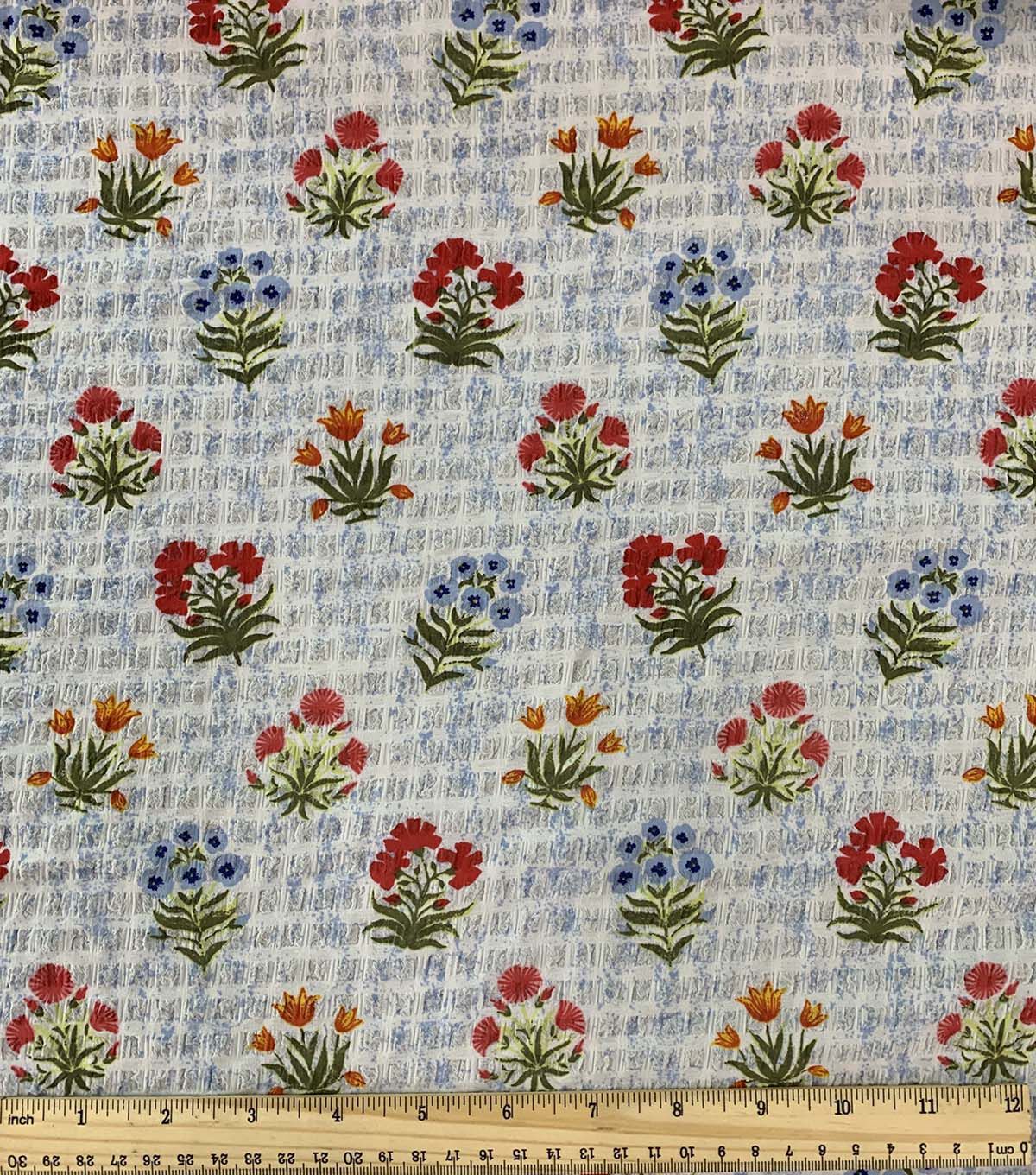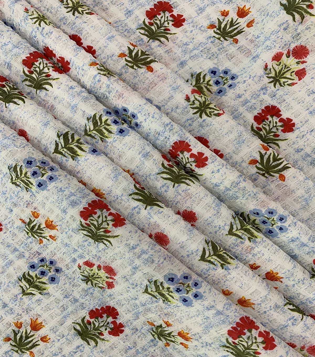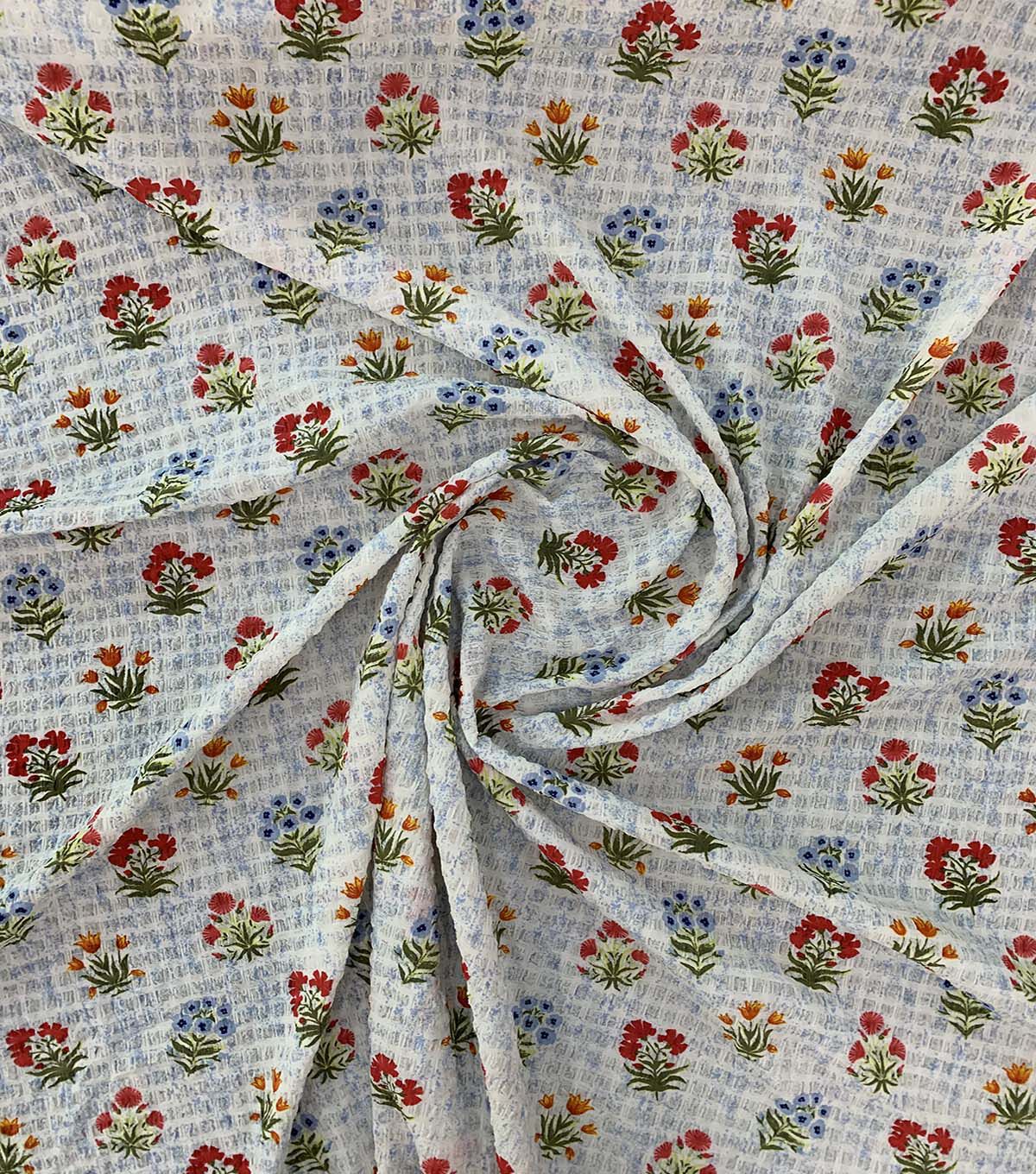 Indulge in the beauty of this Floral on Cream Bubble Crepe Fabric. The intricate floral design on the cream background is sure to make any project stand out. The bubble crepe texture adds a unique touch to the fabric, making it perfect for a variety of projects. Whether you're creating a stunning dress or a beautiful blouse, this fabric is sure to impress.