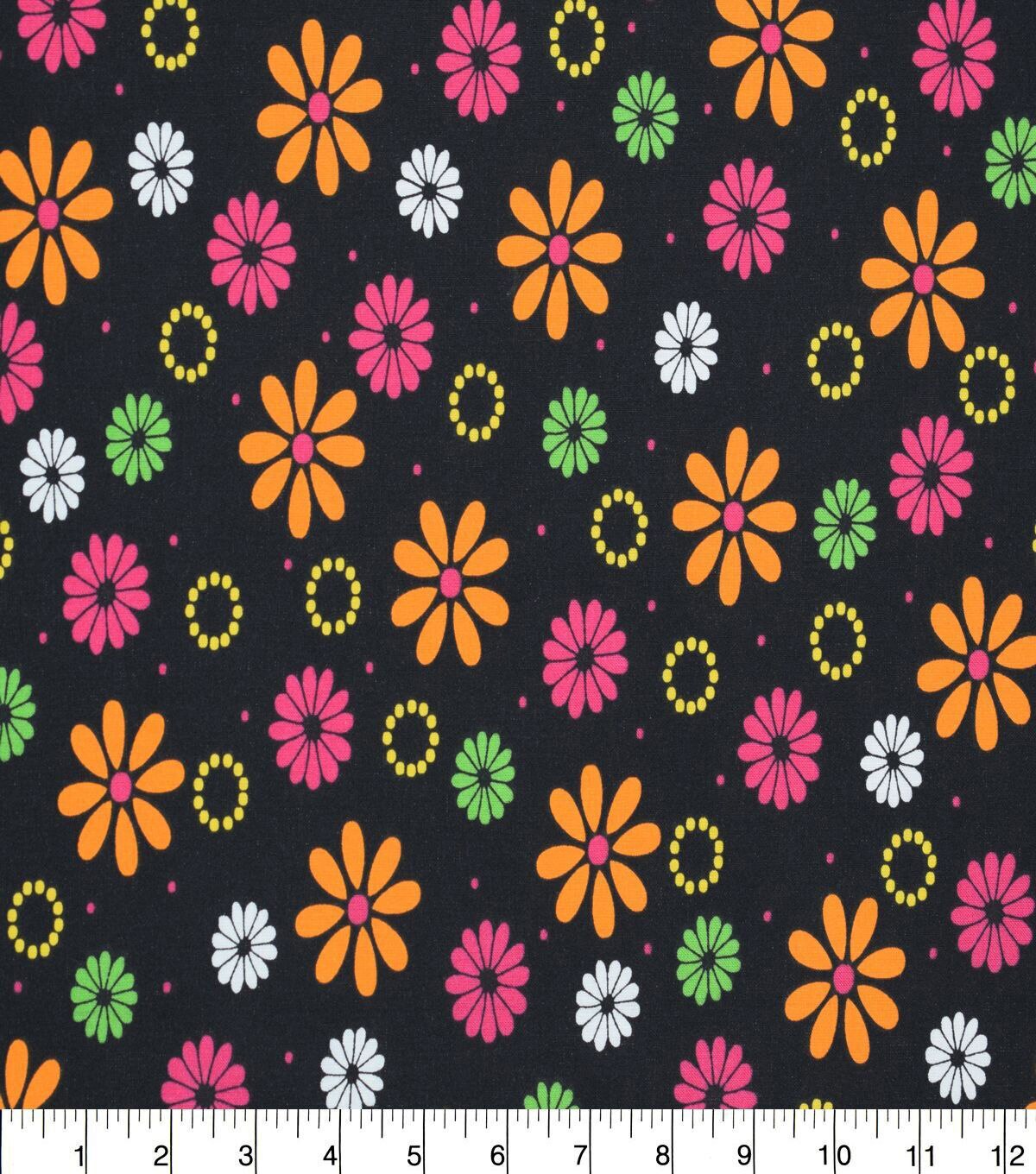 Flower Power on Black Quilt Cotton Fabric by Quilter's Showcase