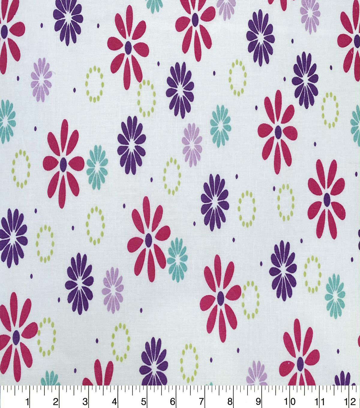 Flower Power on White Quilt Cotton Fabric by Quilter's Showcase