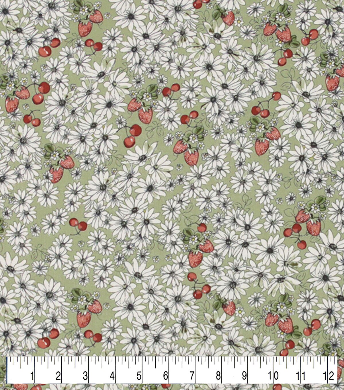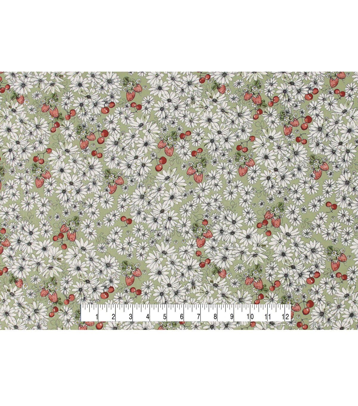 Flowers & Berries on Sage Quilt Cotton Fabric by Keepsake Calico