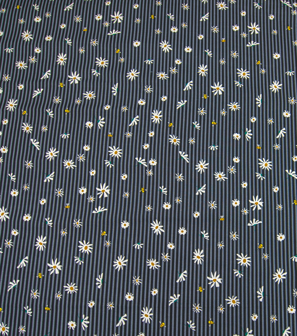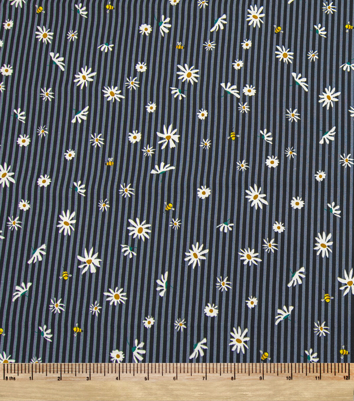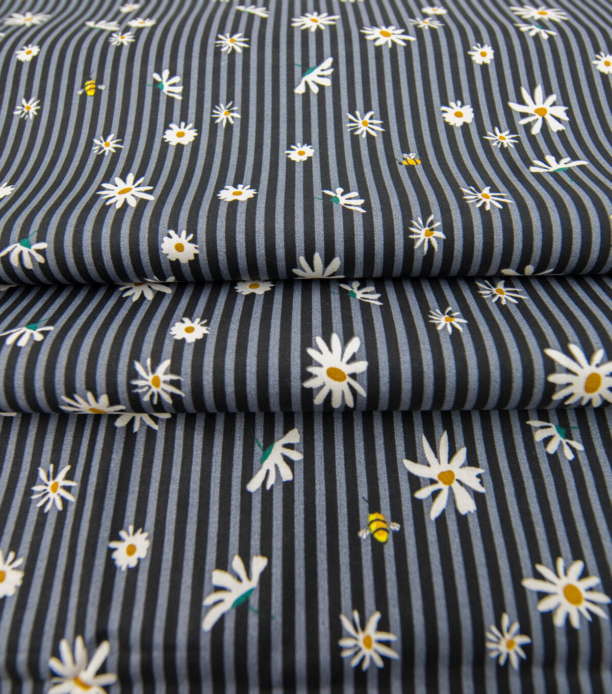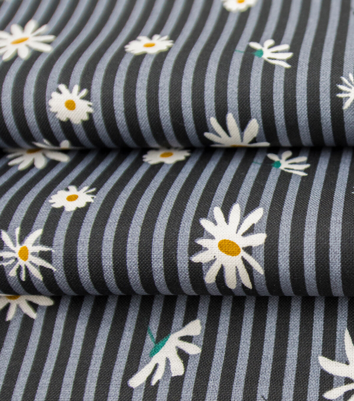 • Flowers on Black & Gray Striped Quilt Cotton Fabric by Keepsake Calico