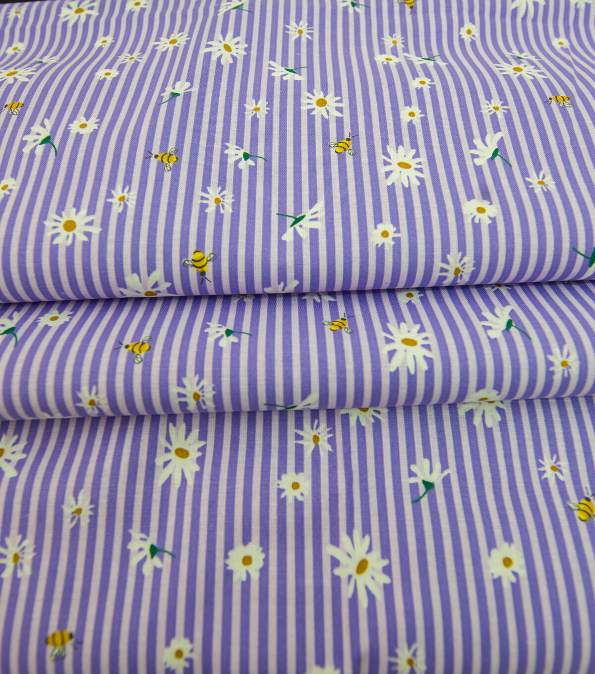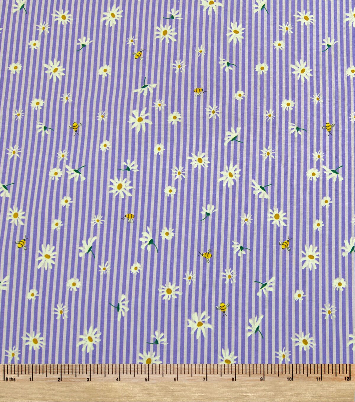 Flowers on White & Purple Striped Quilt Cotton Fabric by Keepsake Calico