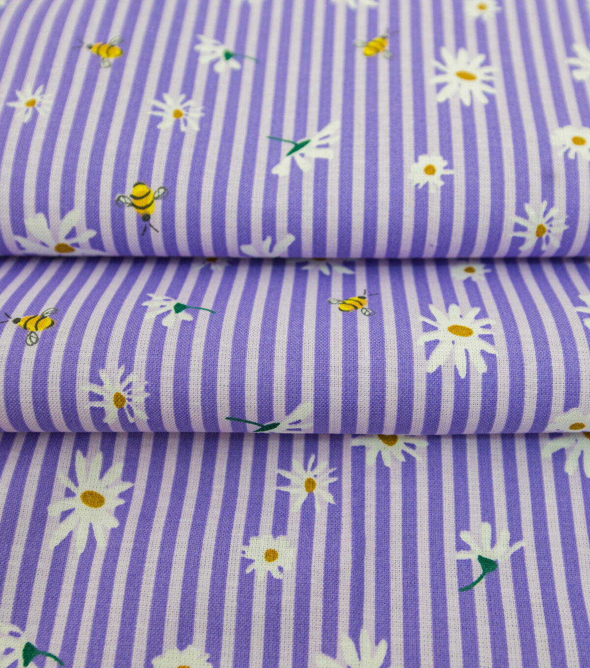 • Flowers on White & Purple Striped Quilt Cotton Fabric by Keepsake Calico