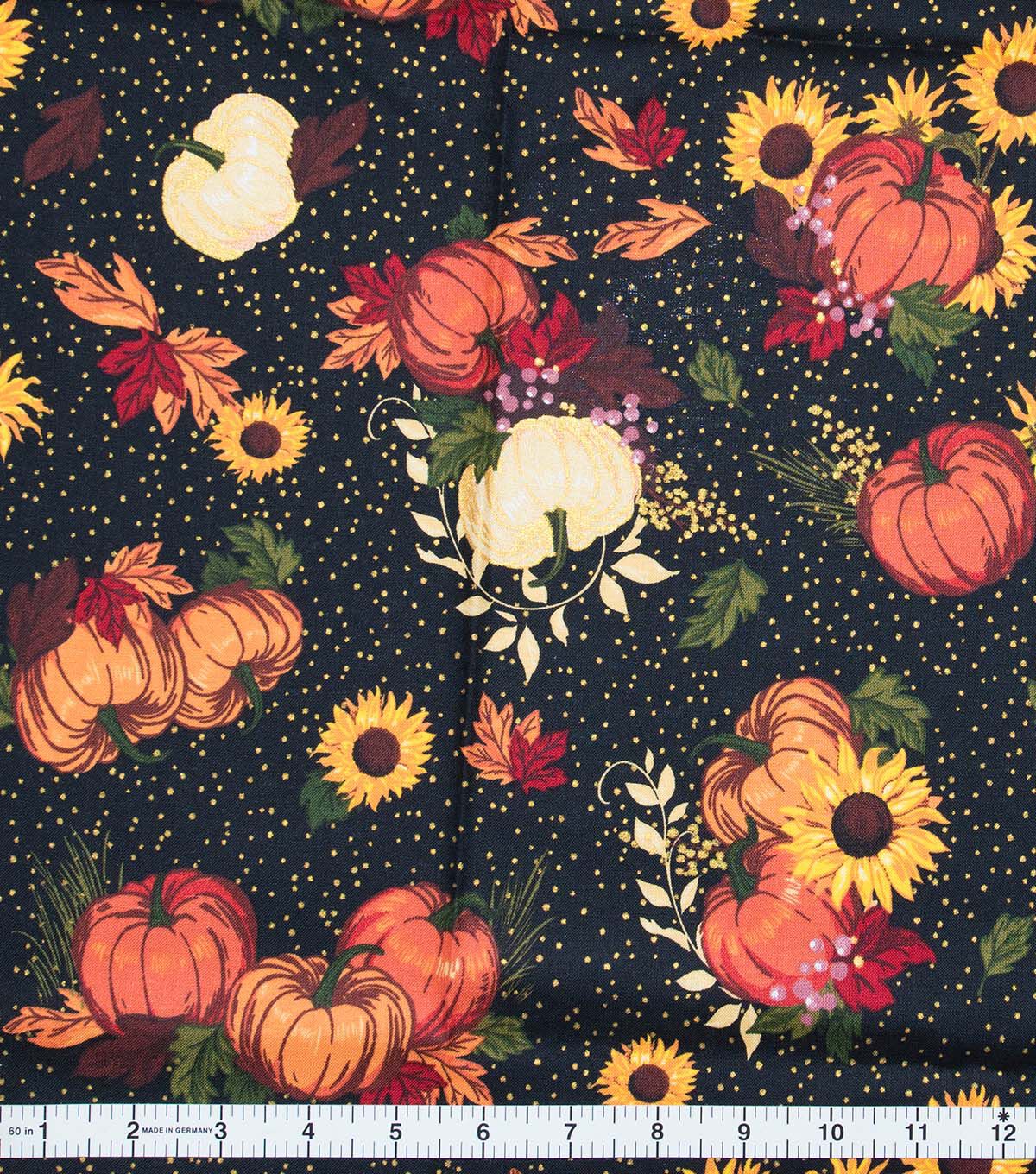• Flowers & Pumpkins On Black Dot Fall Print Cotton Fabric
