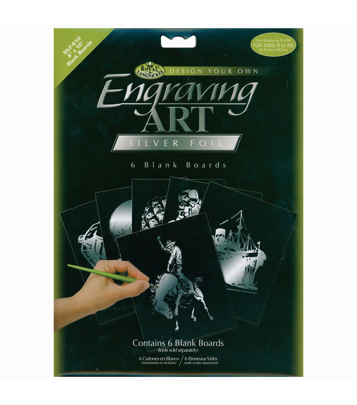 Create your own fantastic engravings with these blank engraving foil sheets. Simply scratch the blank surface and your design appears. Let your imagination run wild! Each package contains six 10x8in sheets. Tool sold separately. Available in a variety of underlying colors. Recommended for children ages 8 and up. Imported. "