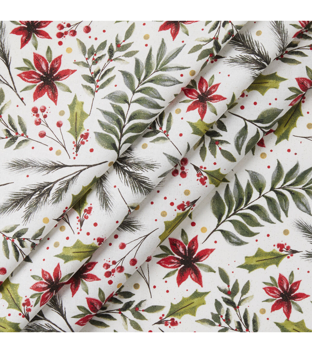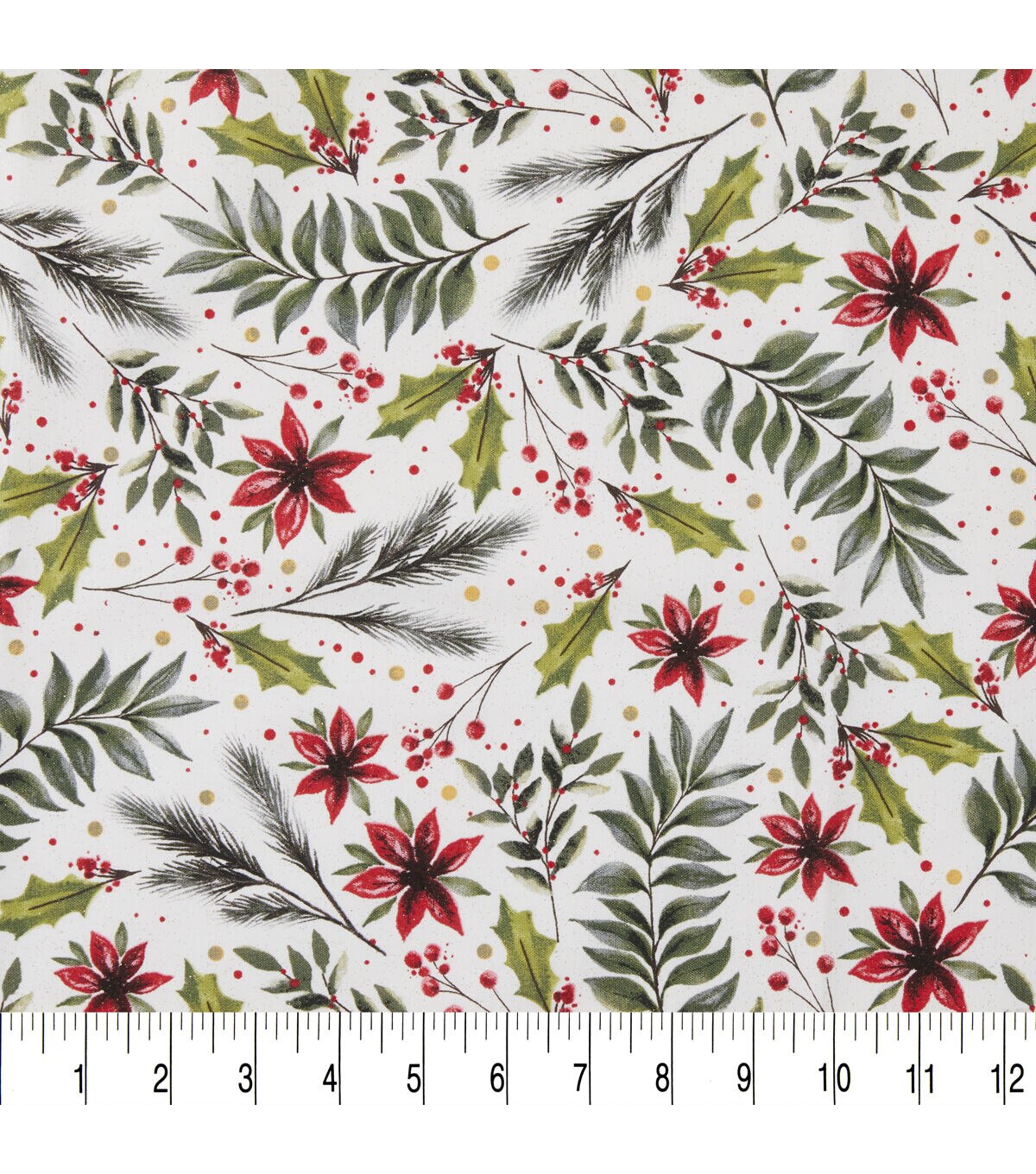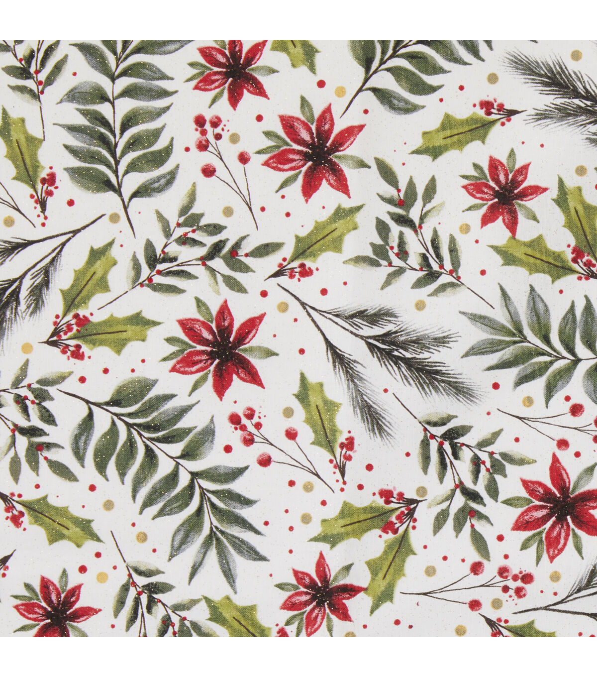Get in the Holiday Spirit with Foliage & Flowers on White Christmas Glitter Cotton Fabric