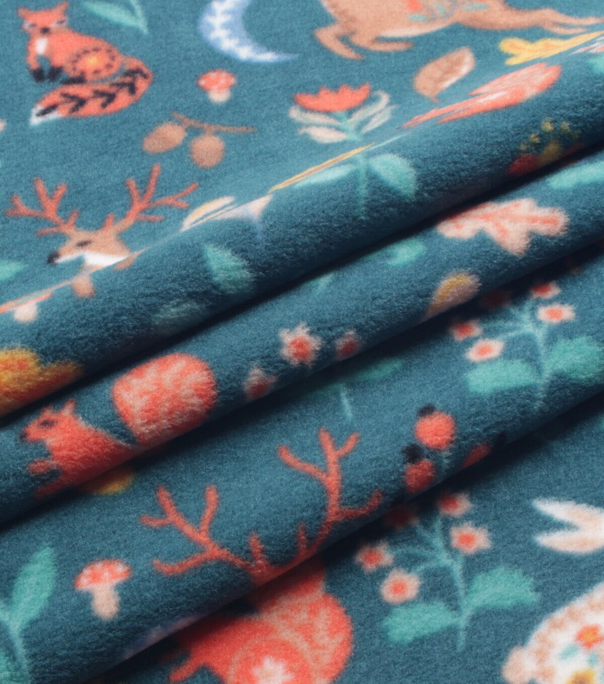 • Folk Woodland Animals on Teal Anti Pill Fleece Fabric