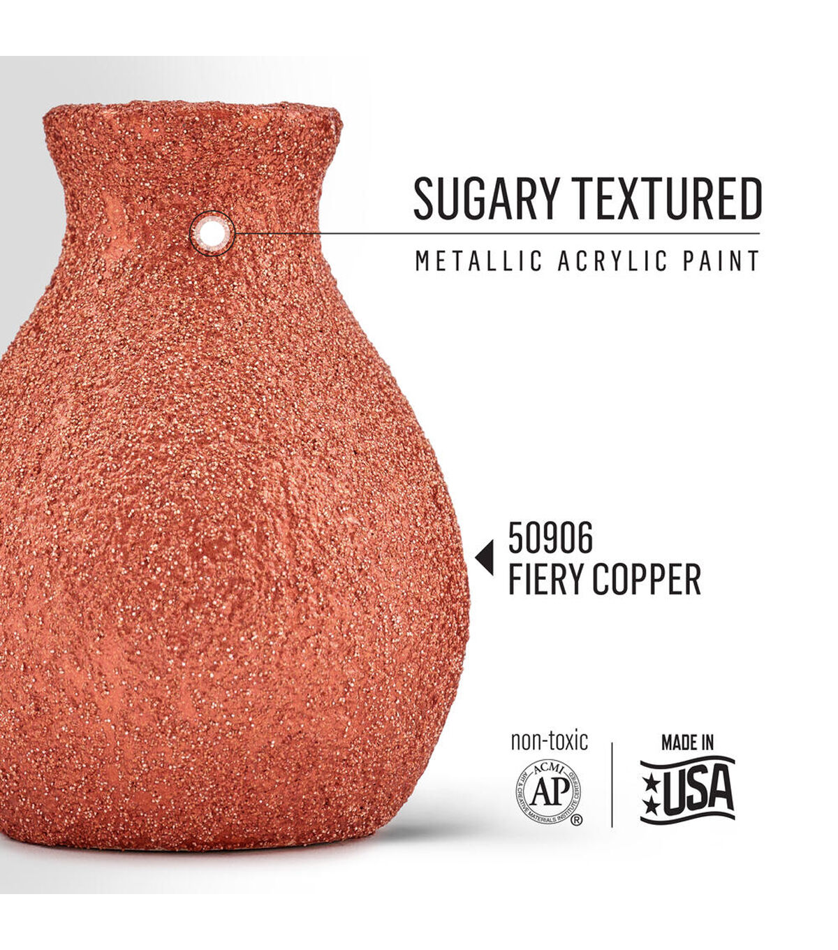 FolkArt Sugar Metallic Textured Acrylic paint gives a sugary texture and a metallic shine to your projects. This unique formula features rich metallic hues and vibrant jewel tones paired with a granular touch. Elevate your craft and decor projects by adding depth and contrast with the dimensional luster of this paint. Perfect for indoor and outdoor projects, this waterbased and non-toxic formula can be used on a variety of surfaces including glass, wood, canvas, terra cotta, and metal. Give your arts and crafts a sugary metallic touch with the exquisite formula of FolkArt Sugar Metallic Textured Acrylic Paint.
