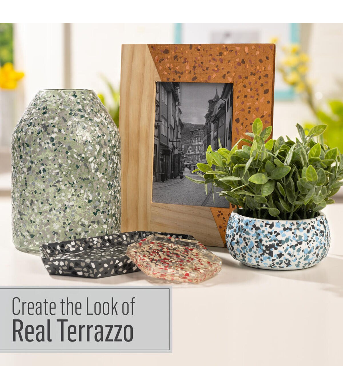 - DIY THE TERRAZZO LOOK – Quick and easy application in three simple steps: Apply, Sprinkle, and Seal! Pair with FolkArt Terrazzo 2-in-1 Sealers.