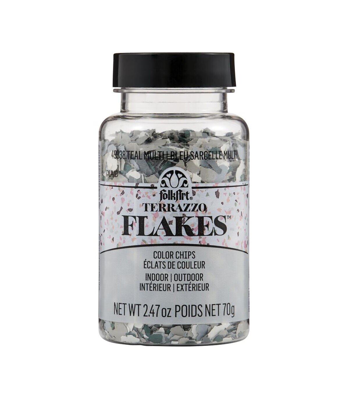 Create the look of real terrazzo with FolkArt Terrazzo Flakes. Multi-colored and sized matte color chips can be used on both raw and painted surfaces. Terrazzo Flakes have a quick and easy application in three simple steps: apply glue, sprinkle flakes, and seal to protect. Seal your work with the FolkArt Terrazzo Sealer, a 2-in-1 Glue and Sealer to complete your projects. FolkArt’s two-part terrazzo system can be used on a variety of surfaces including wood, metal, and glass. Mix into plaster or resin projects to add depth and dimension. Perfect for indoor and outdoor projects. Try FolkArt Terrazzo Flakes to create one-of-a-kind home décor and gifts.