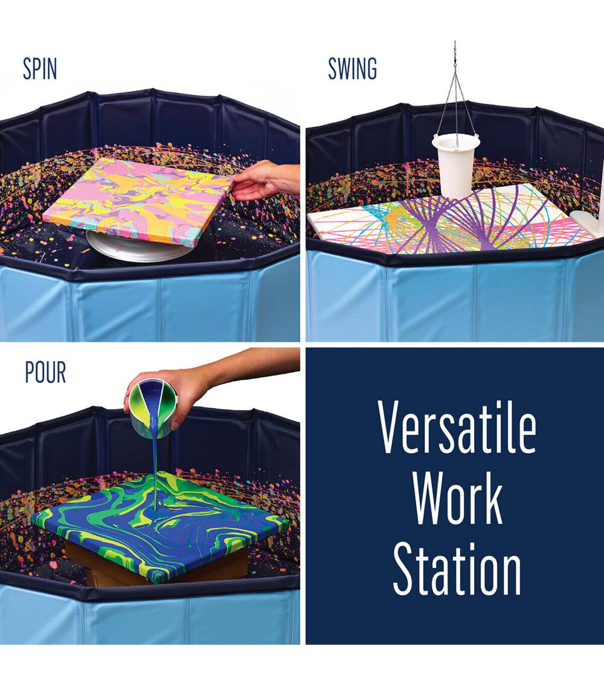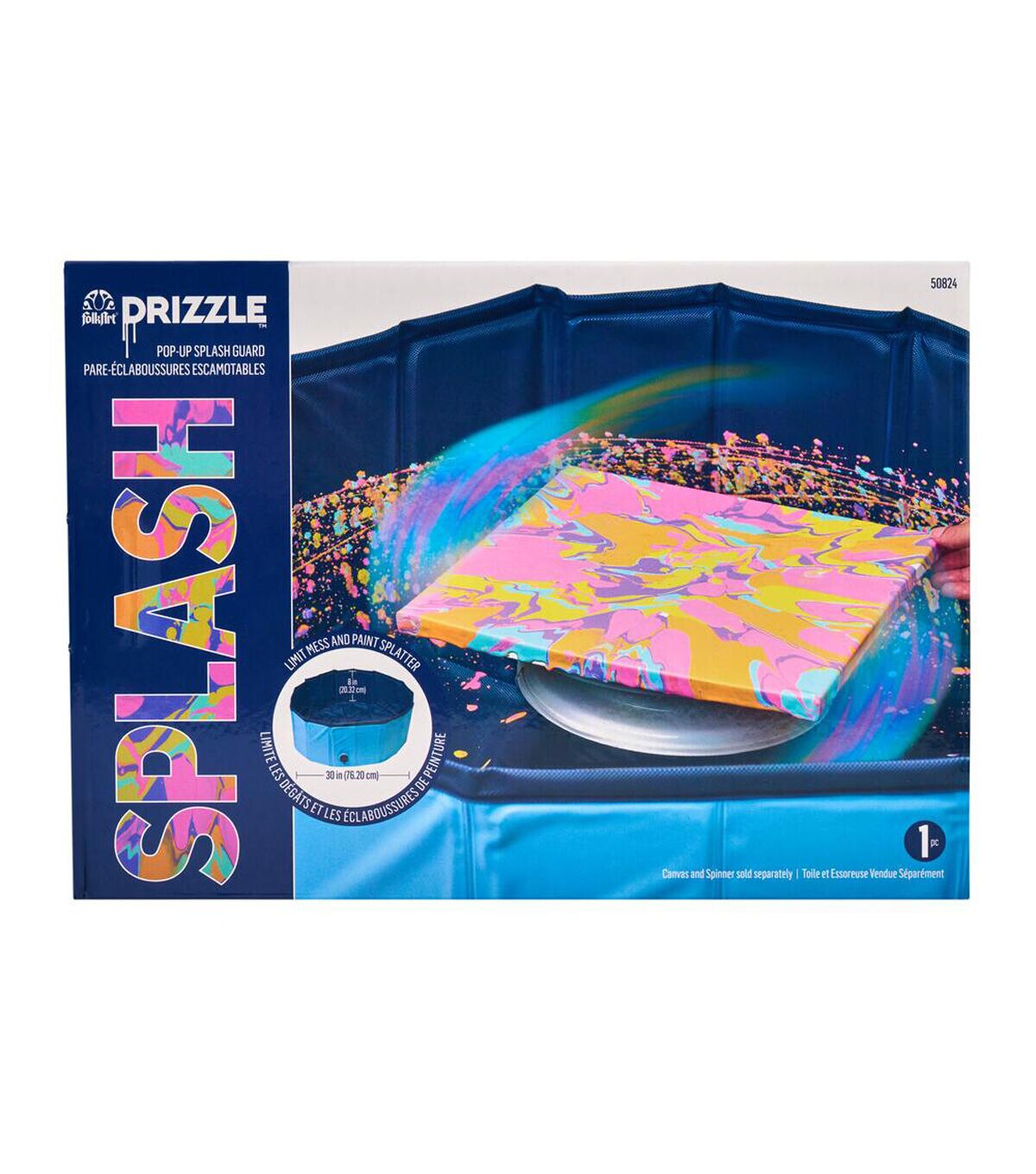 Limit mess and paint splatter with the FolkArt Drizzle Pop-Up Splash Guard. This durable and reusable splash guard creates a versatile workstation that is easy to clean and folds for storage. The interior can fit a 20 x 20 canvas and is perfect for using a variety of Drizzle products and tools. Spin, swing, pour, and so much more with the FolkArt Drizzle Pop-Up Splash Guard!
