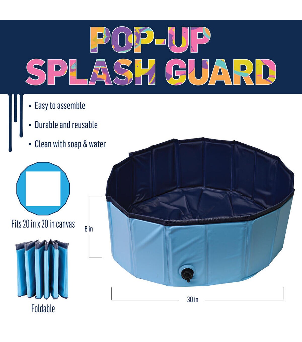 - EXPLORE OUR DRIZZLE TOOLS – The FolkArt Drizzle Pop-Up Splash Guard can become a reusable workstation that is easy to clean and folds for storage.
