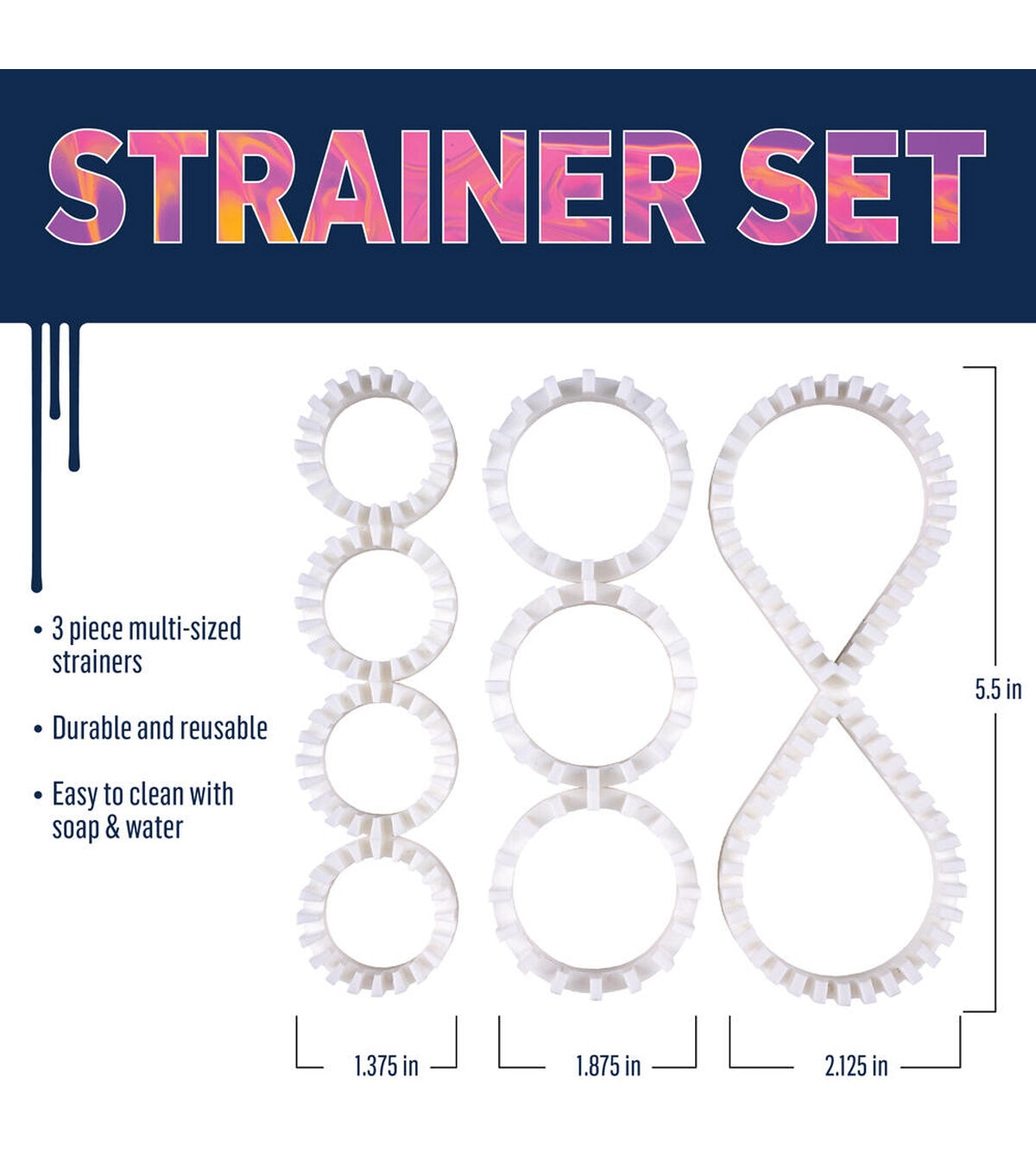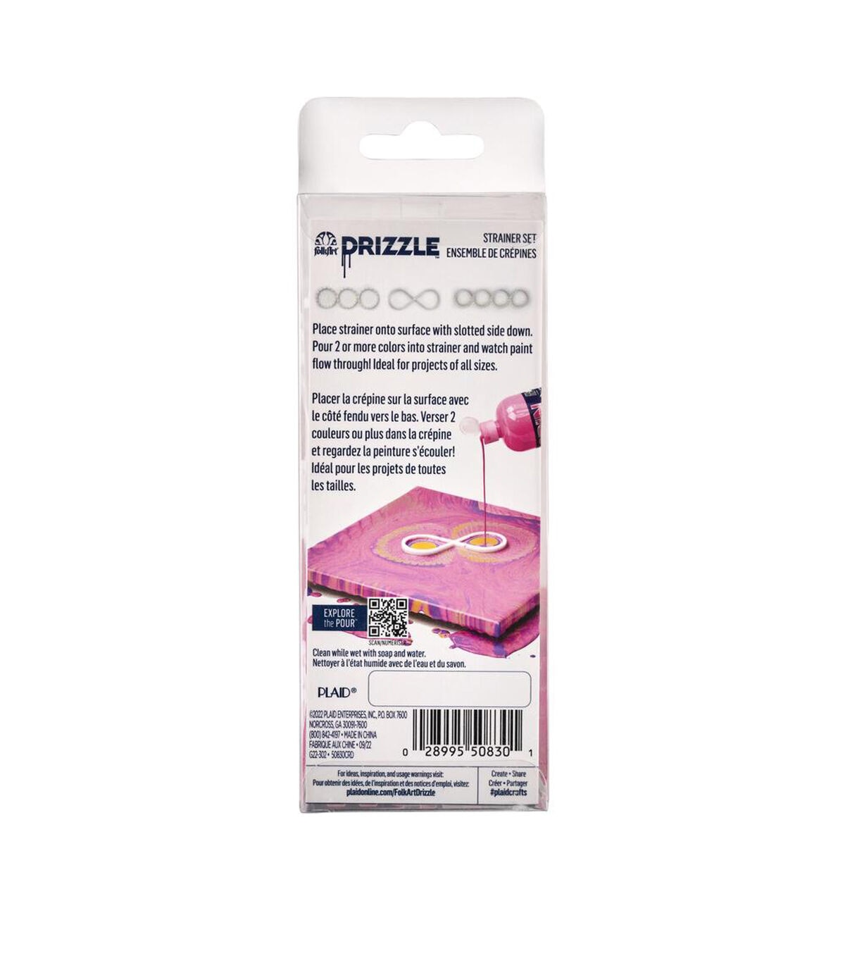 - EXPLORE OUR DRIZZLE TOOLS – The FolkArt Drizzle Strainer Set includes 3 multi-sized strainers that each will achieve a different pouring effect.