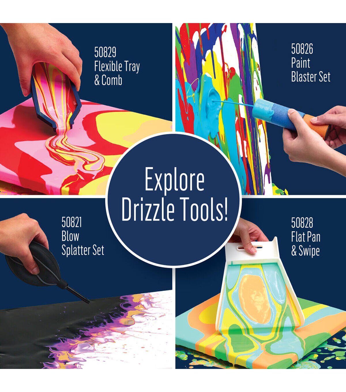 Watch color combinations flow using the FolkArt Drizzle Strainer Set. This tool set includes 3 multi-sized strainers perfect for creating unique color patterns. This tool set is durable and reusable and is easy to clean with soap and water. Explore the pour using FolkArt Drizzle products or any pouring paint with the FolkArt Drizzle Strainer Set.