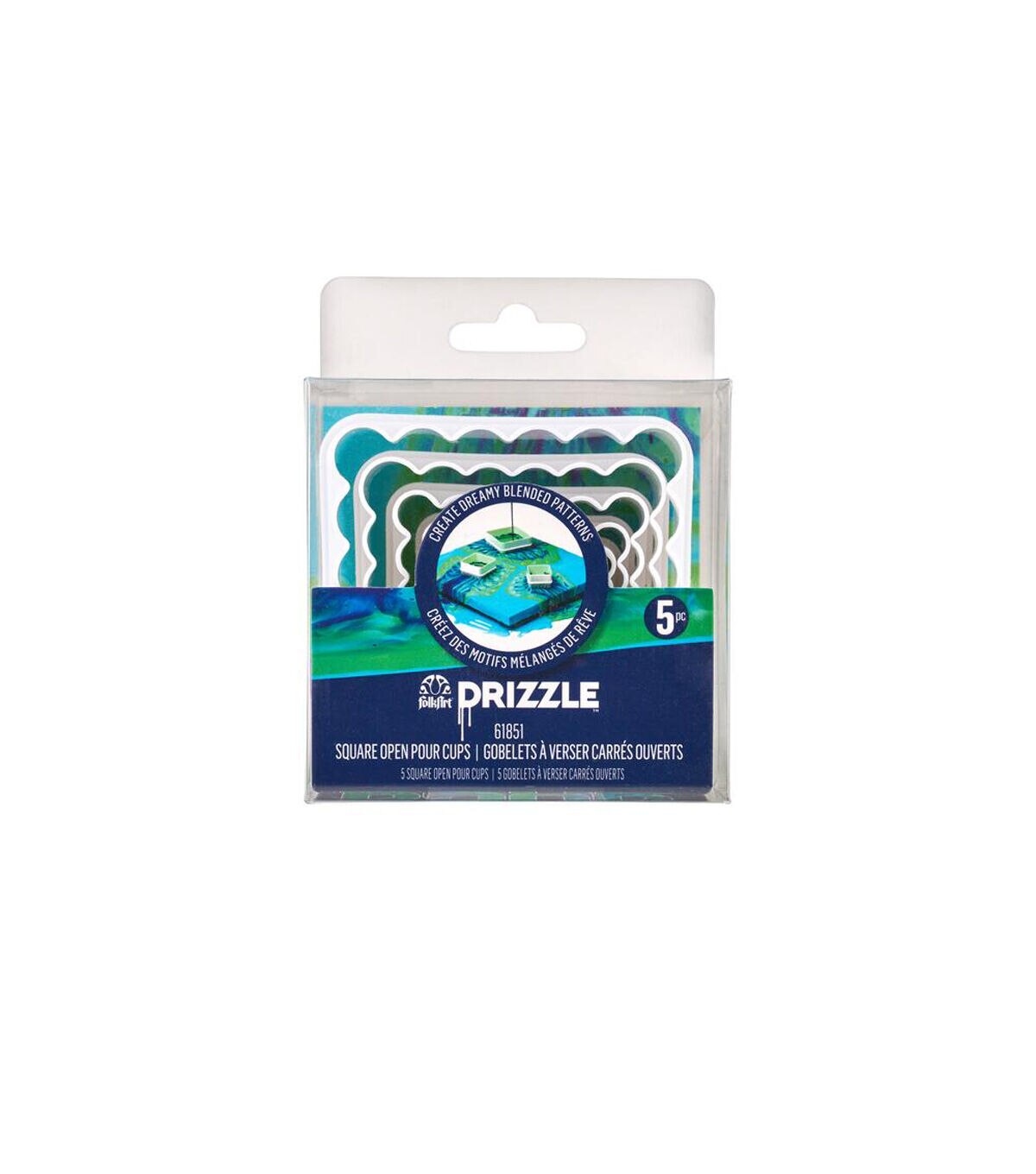 - EXPLORE OUR DRIZZLE TOOLS – The FolkArt Drizzle Square Open Pour Cups set includes 5 square open pour cups have double-sided straight and wavy edges for creating unique fluid art.