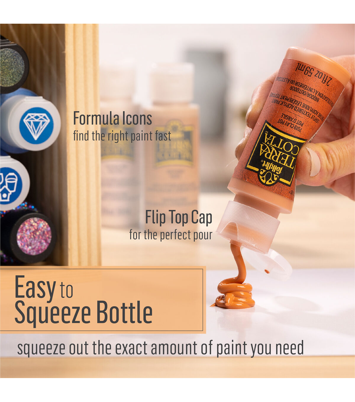 - SIMPLE CLEAN UP - Clean up is easy with FolkArt Terra Cotta Acrylic Paint! Simply clean up while wet with soap and water