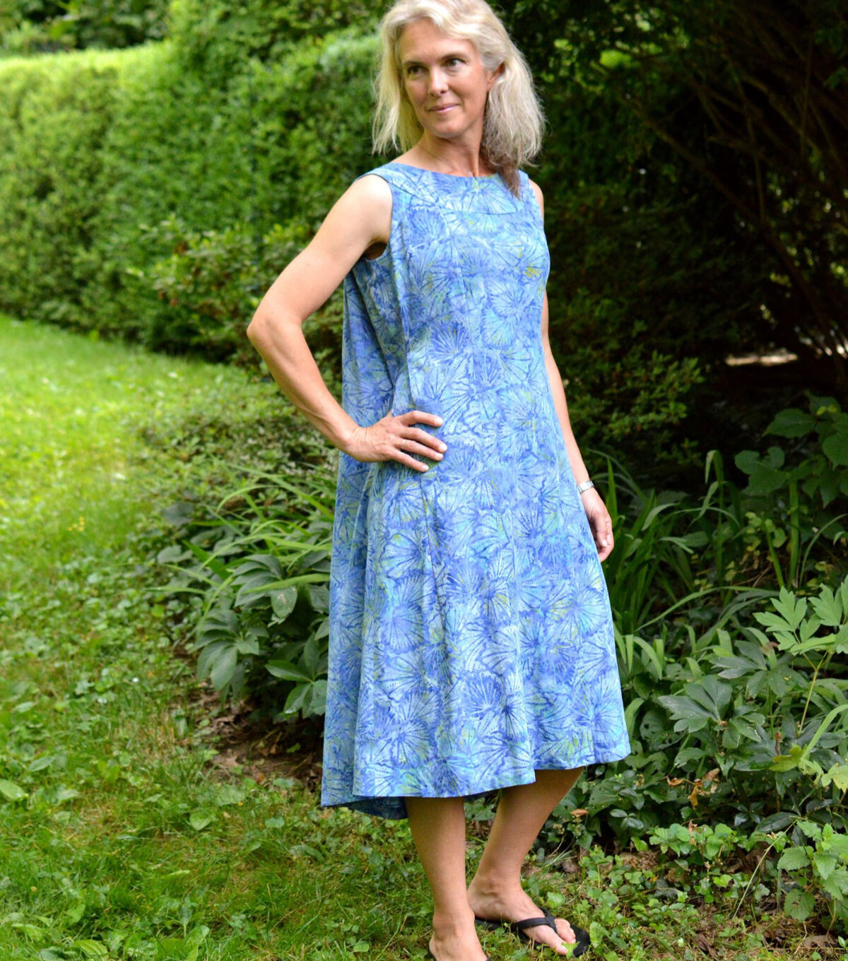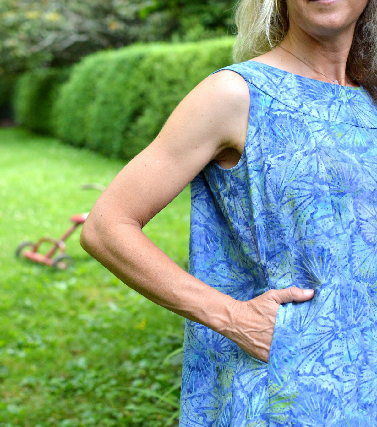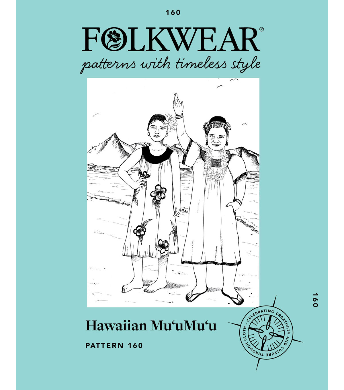 This sewing pattern for a mu'umu'u features three views, each with a different sleeve option: sleeveless, short sleeve, and elbow-length sleeve. The short sleeve is bell-shaped, while the longer sleeve has elastic at the cuff and falls to below the elbow. All three dresses feature princess seams, side darts with cleverly hidden pockets in the dart (optional), and an interior elastic belt to add additional shaping to the front as desired. The back is gathered to a pointed yoke and the front yoke is a smooth crew-neck shape. This dress is a perfect warm-weather outfit for comfort and style. Considered aloha attire, this loose and breezy garment has its origins in the 1800s when missionaries adapted their Mother Hubbard-style dresses to fit Hawaiian women. Originally a tool of assimilation, native Hawaiians have since embraced this dress and all ages wear it to social events, family gatherings, and for some styles of hula. The mu'umu'u's popularity has spread worldwide due to its comfort, ease of wear, and colorful prints. Typically mu‘umu‘u are made of cotton and feature tropical florals, or traditional Hawaiian motifs. You can make this garment from silks or linens or solid fabrics as well.