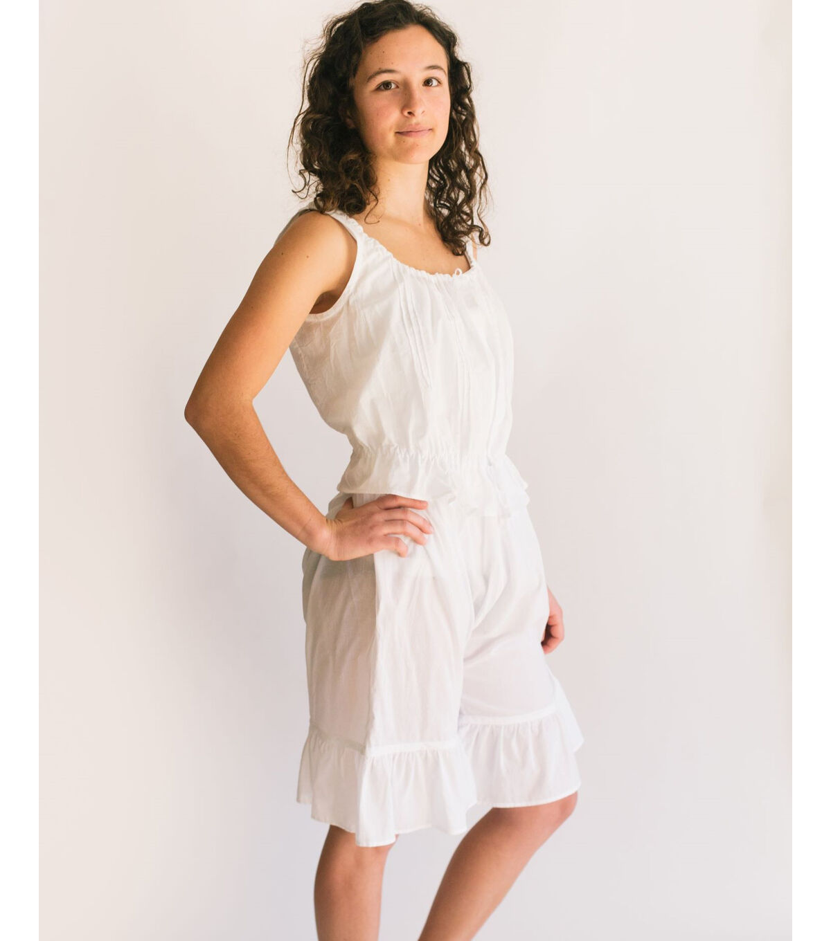 - Suggested fabrics: Fine cottons or blends such as lawn, batiste, broadcloth, muslin, or silk. Petticoat can also be made of taffeta.