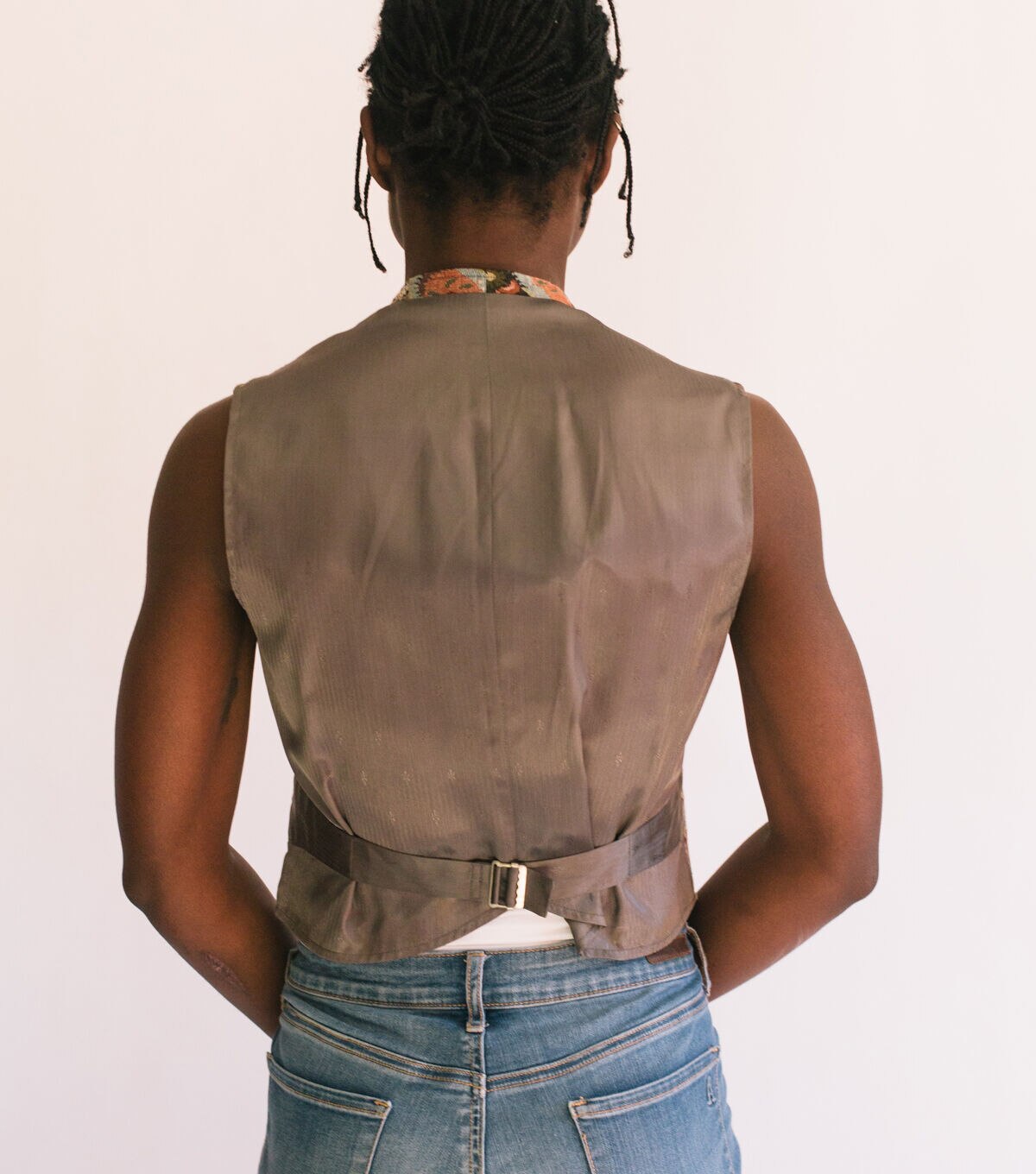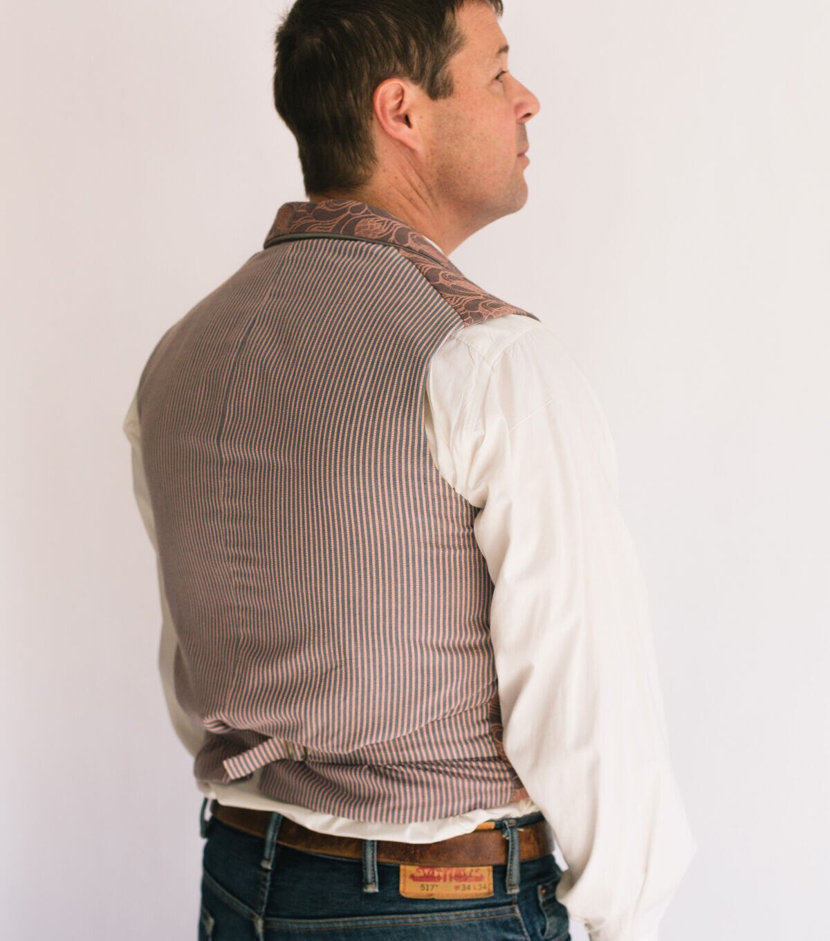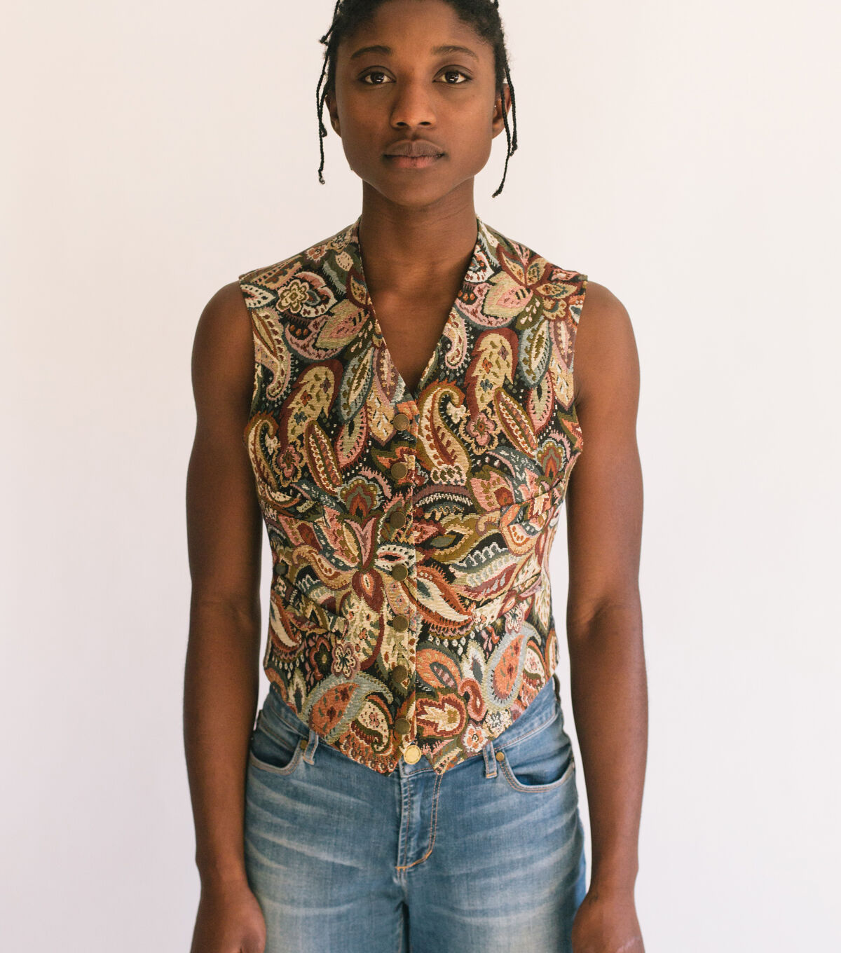 - Suggested fabrics: Medium to heavyweight fabrics of cotton, silk, wool, linen, synthetics or blends with or without nap, such as brocade, velvet, corduroy, canvas, pique, velveteen, or synthetic suede. The bias cut of the shawl-collar vest is especially suitable for stripes or plaids.