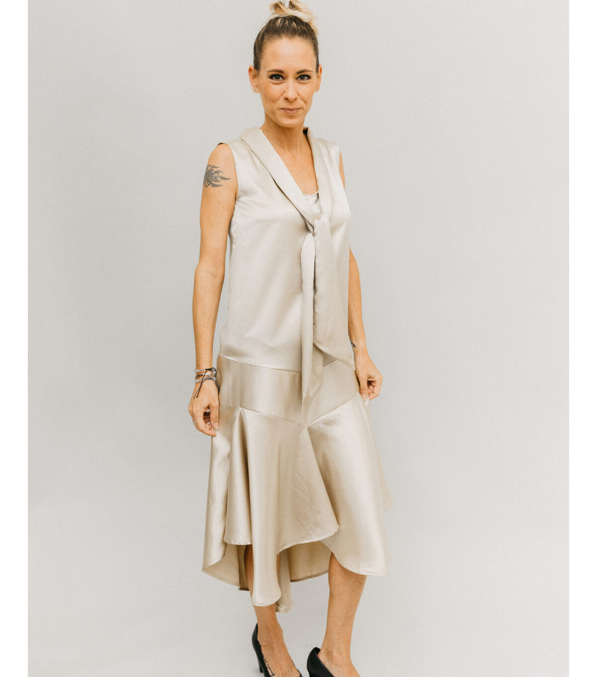- Suggested fabrics: Lightweight fabrics with drape, such as silk or polyester satin, charmeuse, crepe, challis, lightweight linen or cotton.