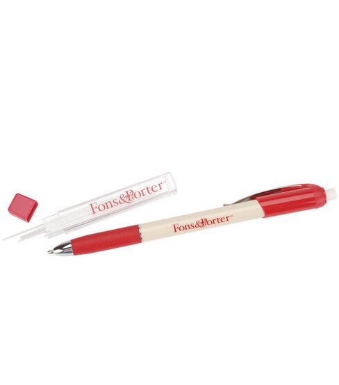 Mark creative patterns on your quilting fabrics with the Fons & Porter Mechanical Fabric Pencil with Refills - White. This pack contains one mechanical fabric pencil with strong ceramic 0.9 mm white lead and 10 lead refills in a reusable storage tube. It is made of water-soluble dyes and is ideal for use on dark fabrics. A soft grip allows you to hold the fabric pencil comfortably. Use it to mark outlines of appliques and embroidery patterns or exact locations of buttons and embellishments on your sewing projects.