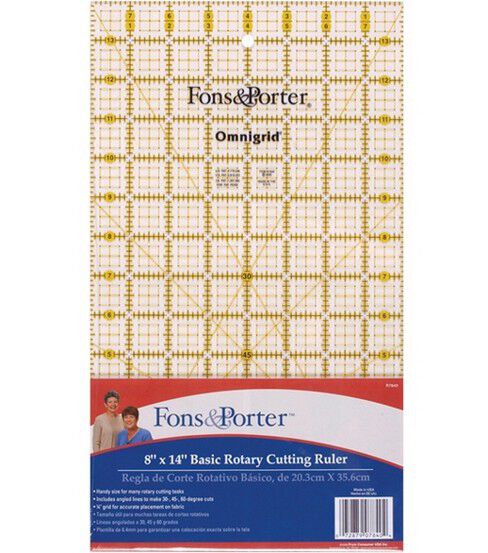Cut perfect pieces of fabric for your quilting projects with the Fons & Porter Basic Rotary Cutting Ruler. This pack includes a long ruler ideal for cutting fabrics that are folded in fourths. The compact size of the ruler makes it easy to carry to workshops. With yellow 0.25-inch grids printed on the ruler, it becomes easy to position the ruler at the right spot. To enable easy arrangement of fabric, the rotary cutting ruler shows 30-degree, 45-degree and 60-degree angled lines.