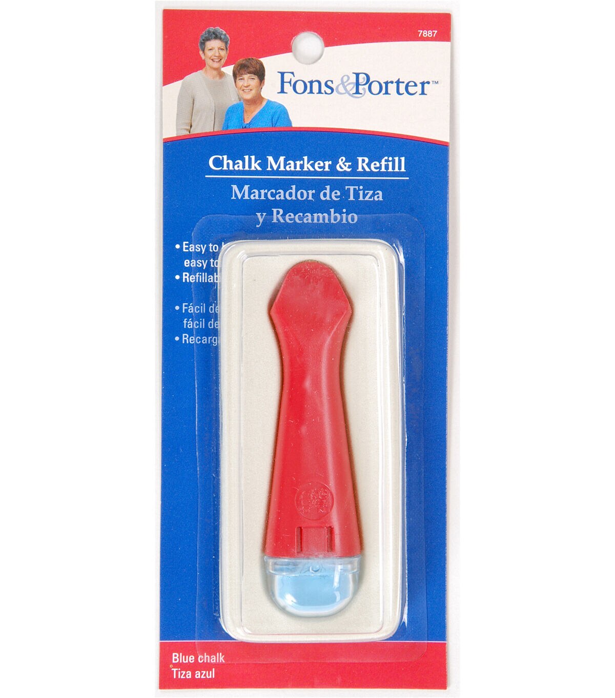 Create perfect shapes and markings on fabrics using the Fons & Porter Chalk Marker with Refill - Blue. This pack comes with one chalk marker refill that is designed to work with the Fons and Porter chalk marker. With this smooth marker refill, you can easily mark lines for quilting, stitching and applique placement projects. Choose a color that contrasts with your fabric so that the markings are visible. Shake this chalk marker refill occasionally to keep the chalk flowing smoothly. Use a brush, fabric eraser or mild detergent to erase the markings once the design is complete.