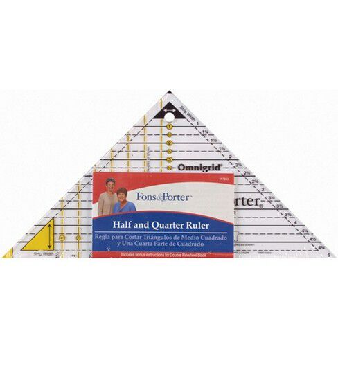 The Fons & Porter Half & Quarter Square Triangle Ruler is ideal to cut half-square and quarter-square triangles in a snap. It's easy to position because of its compact size and comes with clear markings for accurate cuts. Use this specially designed craft ruler to cut even or half-inch wide strips for scrap quilts. You can easily cut squares from the same strips that have been used to cut triangles.
